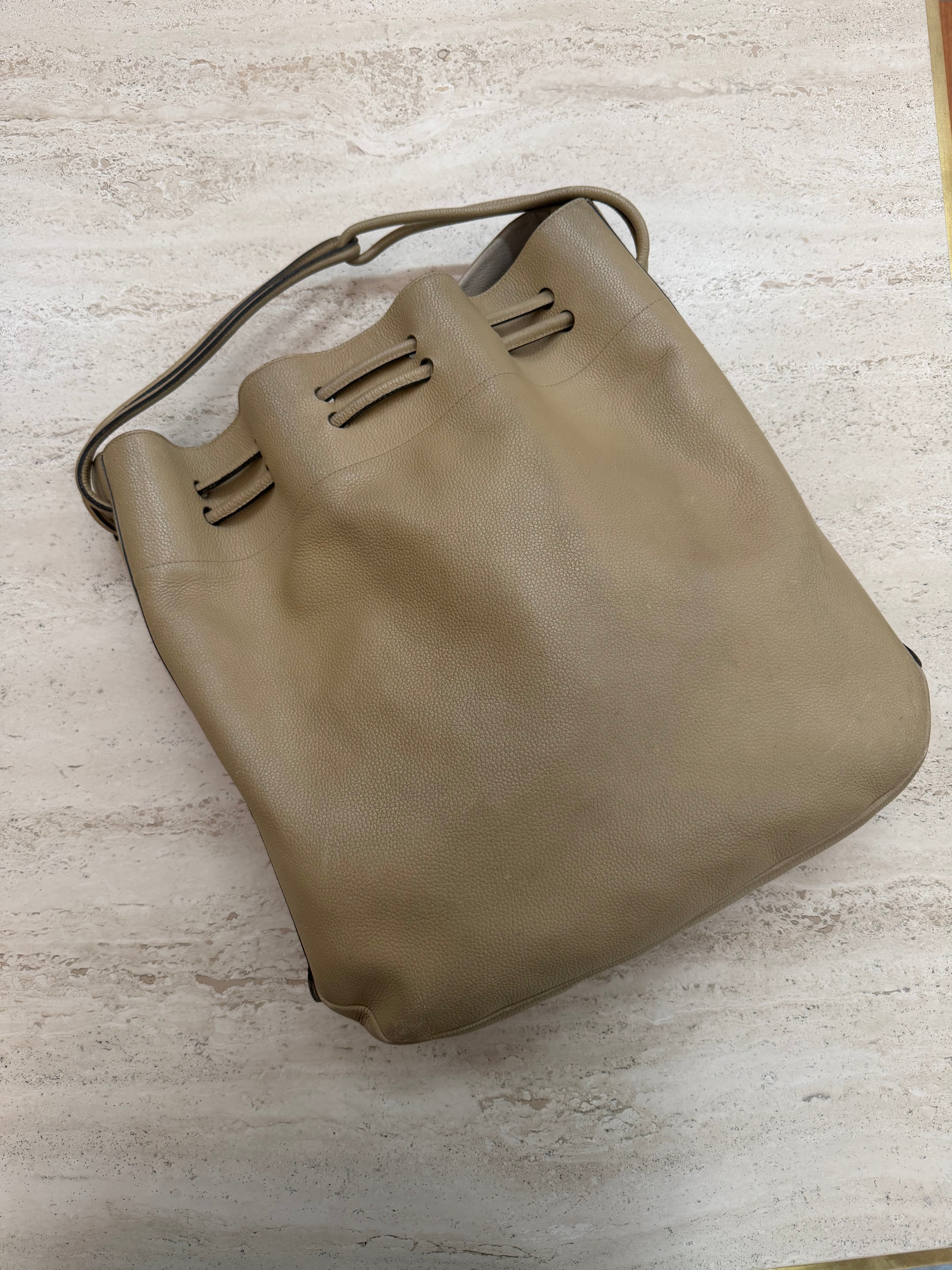 Delvaux Taupe Leather Crossbody Bag – Timeless Elegance – 25 x 33 cm