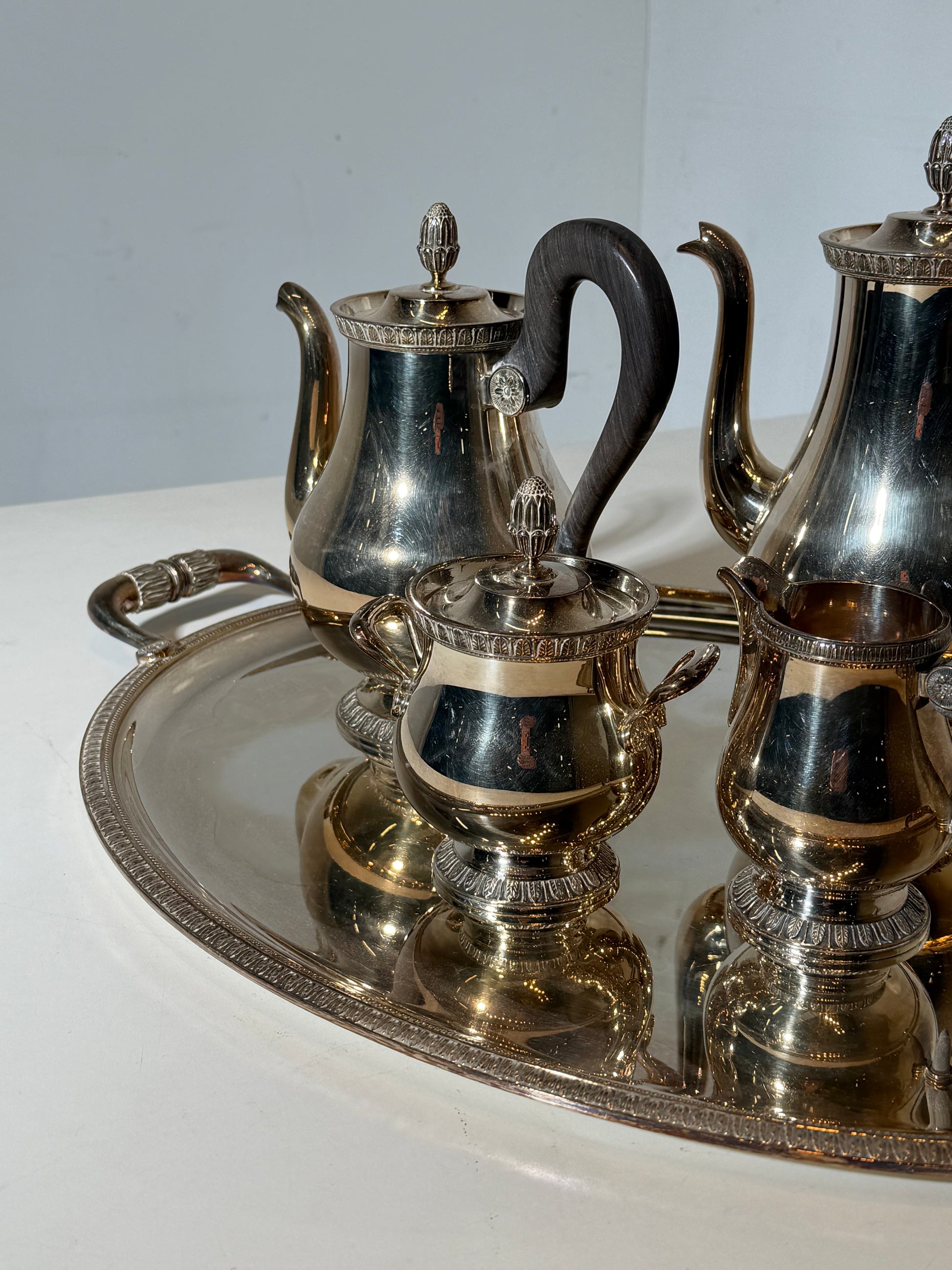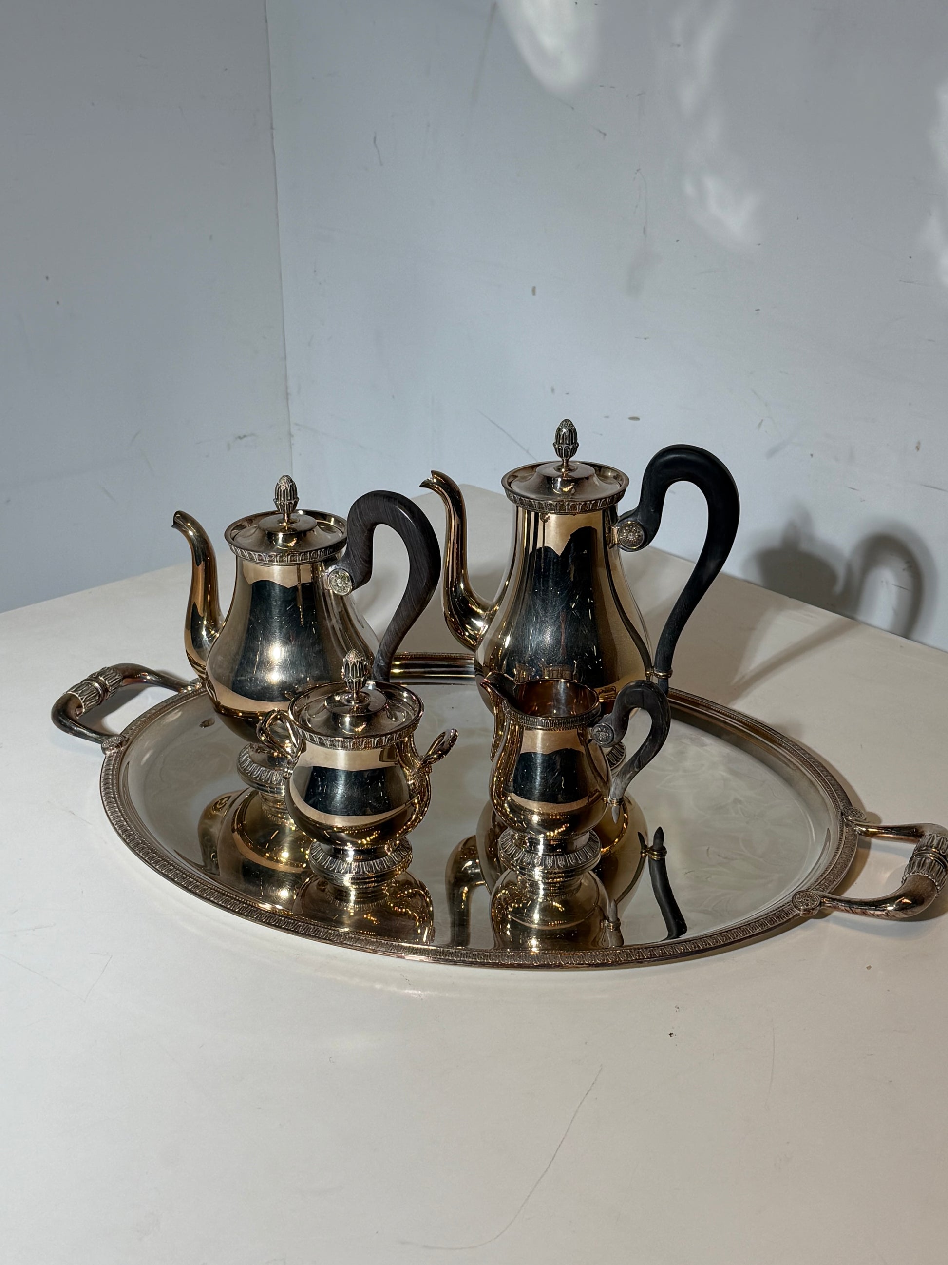 Christofle Malmaison Silver Plated Coffee Tea Set 5 Piece with Tray – French Luxury Service