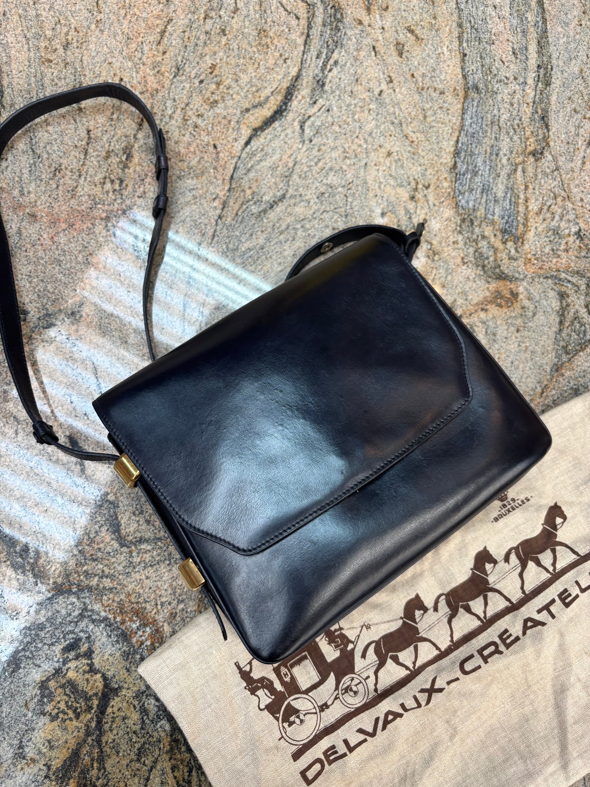 Cet élégant sac bandoulière Delvaux Créateur est confectionné en cuir noir de haute qualité, reflétant le savoir-faire intemporel de la plus prestigieuse maison de maroquinerie de luxe de Belgique.
