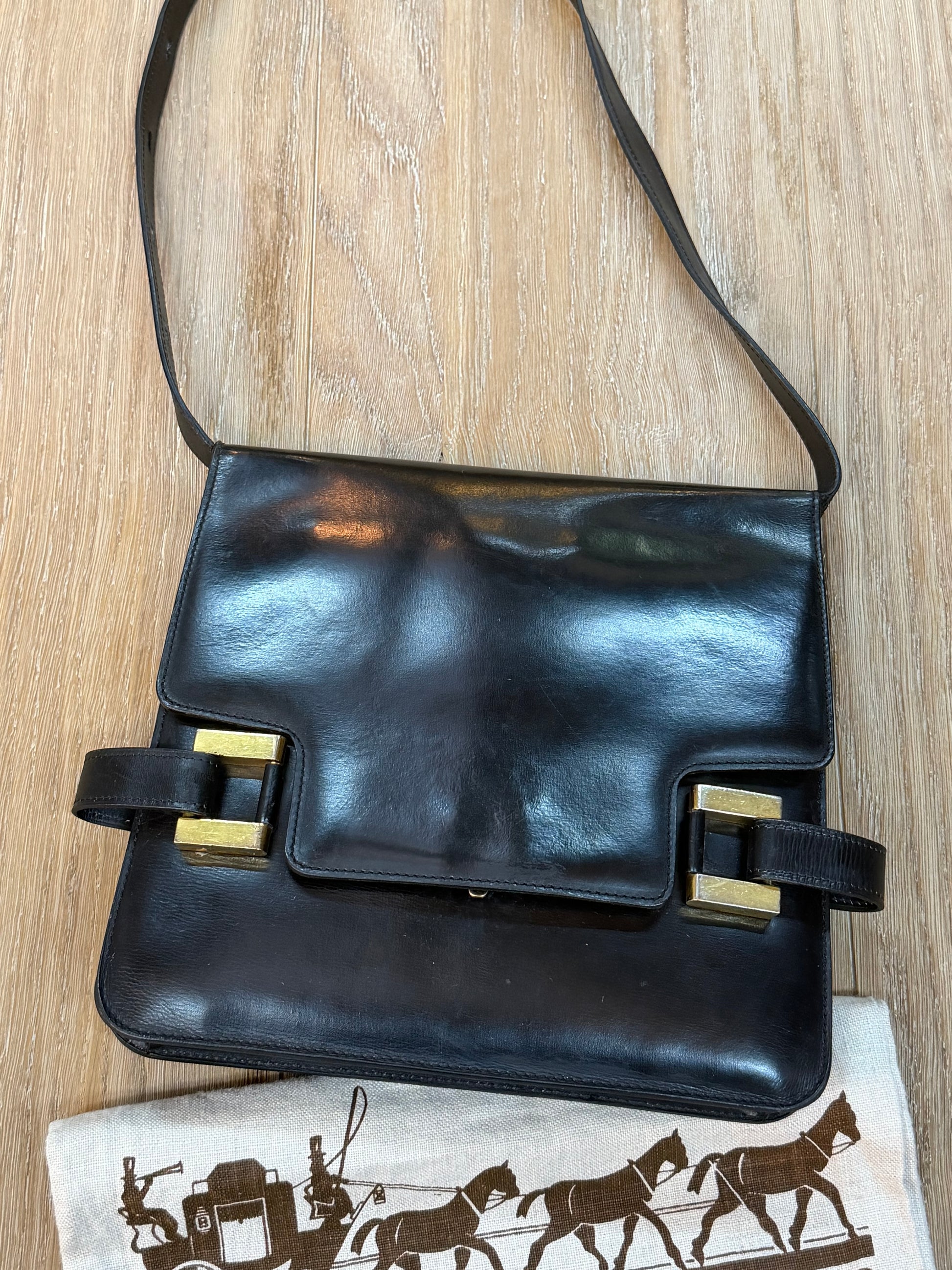 Rare and iconic Delvaux “Xylophone” bag in classic black leather, featuring the signature gold-tone side hardware detail that gives this model its distinctive architectural look. A true vintage statement piece with a structured silhouette, perfect for both day and evening wear.