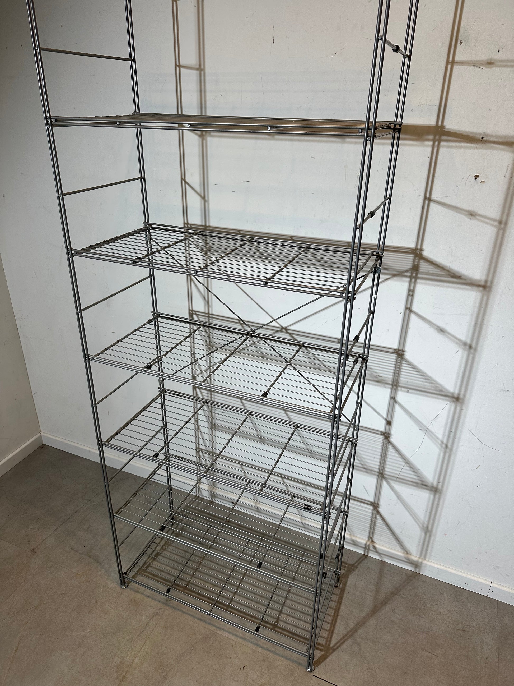 Ce présentoir autoportant offre six niveaux spacieux pour exposer des livres, des céramiques, des objets design ou pour organiser le rangement dans un studio, un loft ou un espace de vente.