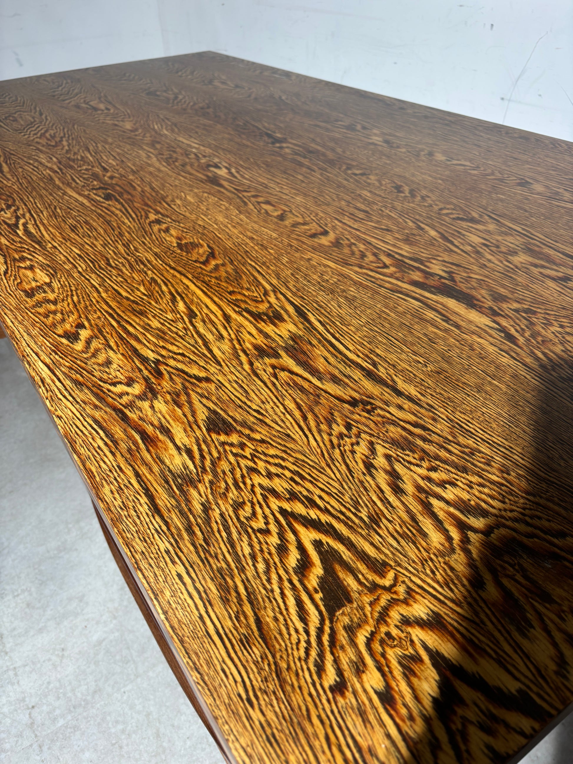 Conçu avec précision et élégance, ce bureau incarne le raffinement du design de direction du milieu du XXe siècle. Le placage en bois exotique présente des tons profonds et des motifs distinctifs, témoignant de la rareté du palissandre de Rio (également appelé palissandre du Brésil), un matériau très recherché et désormais protégé.