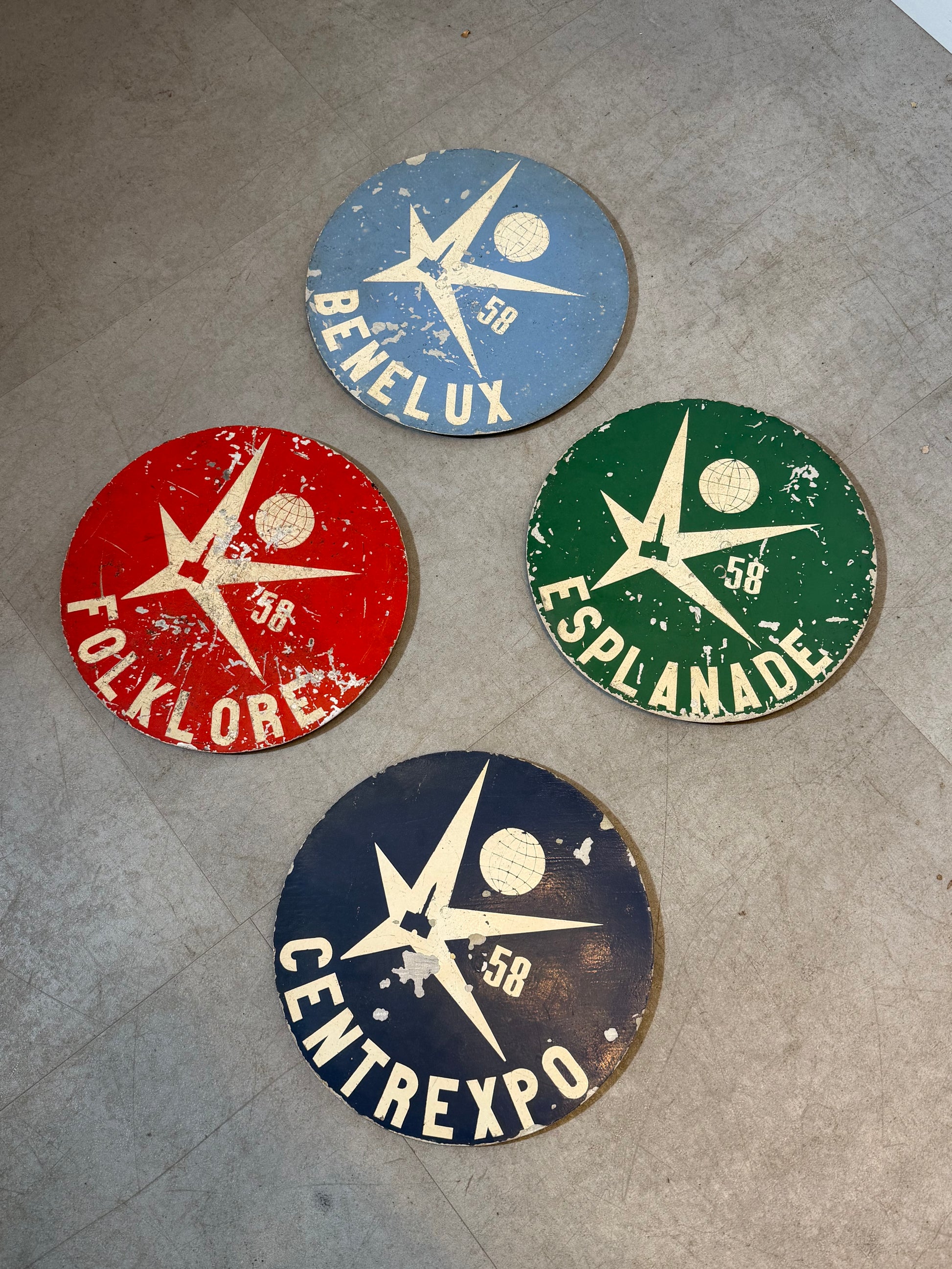 Panneaux ronds originaux de l'Expo 58 (lot de 4)