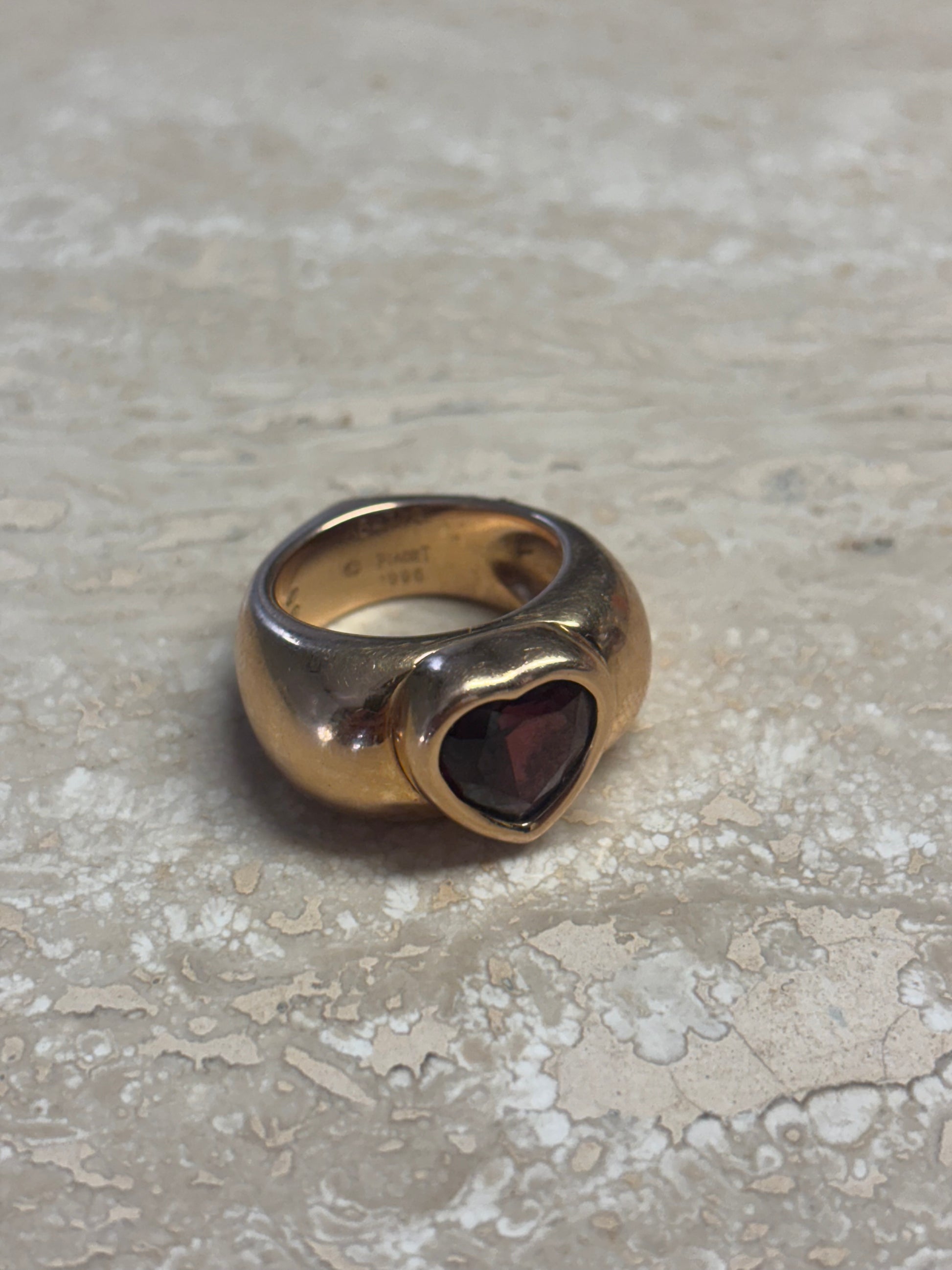 Bague Piaget en or 18 carats avec grenat en forme de cœur – Taille 55
