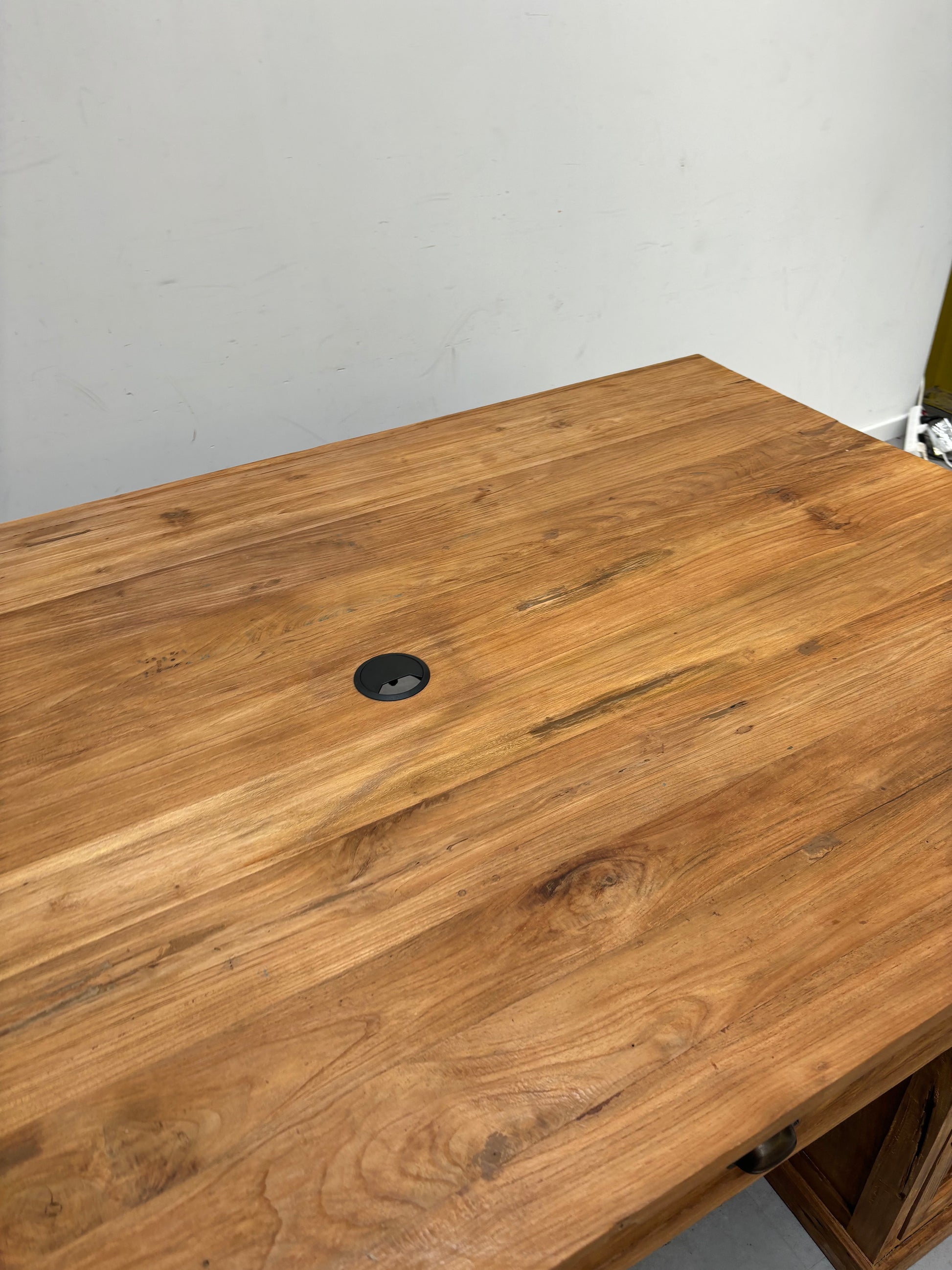 Bureau double face en teck recyclé.