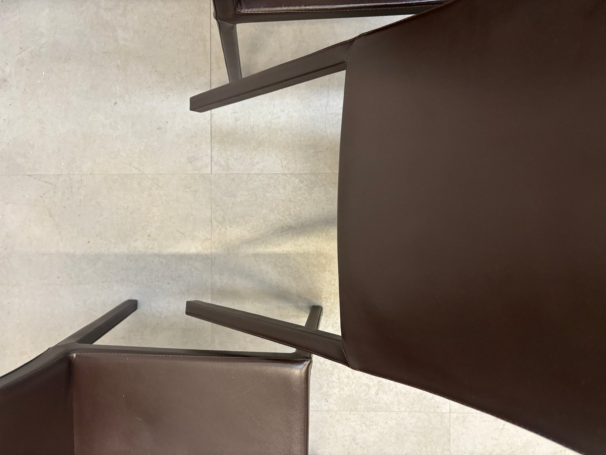 Ensemble de 8 chaises de salle à manger en cuir marron.