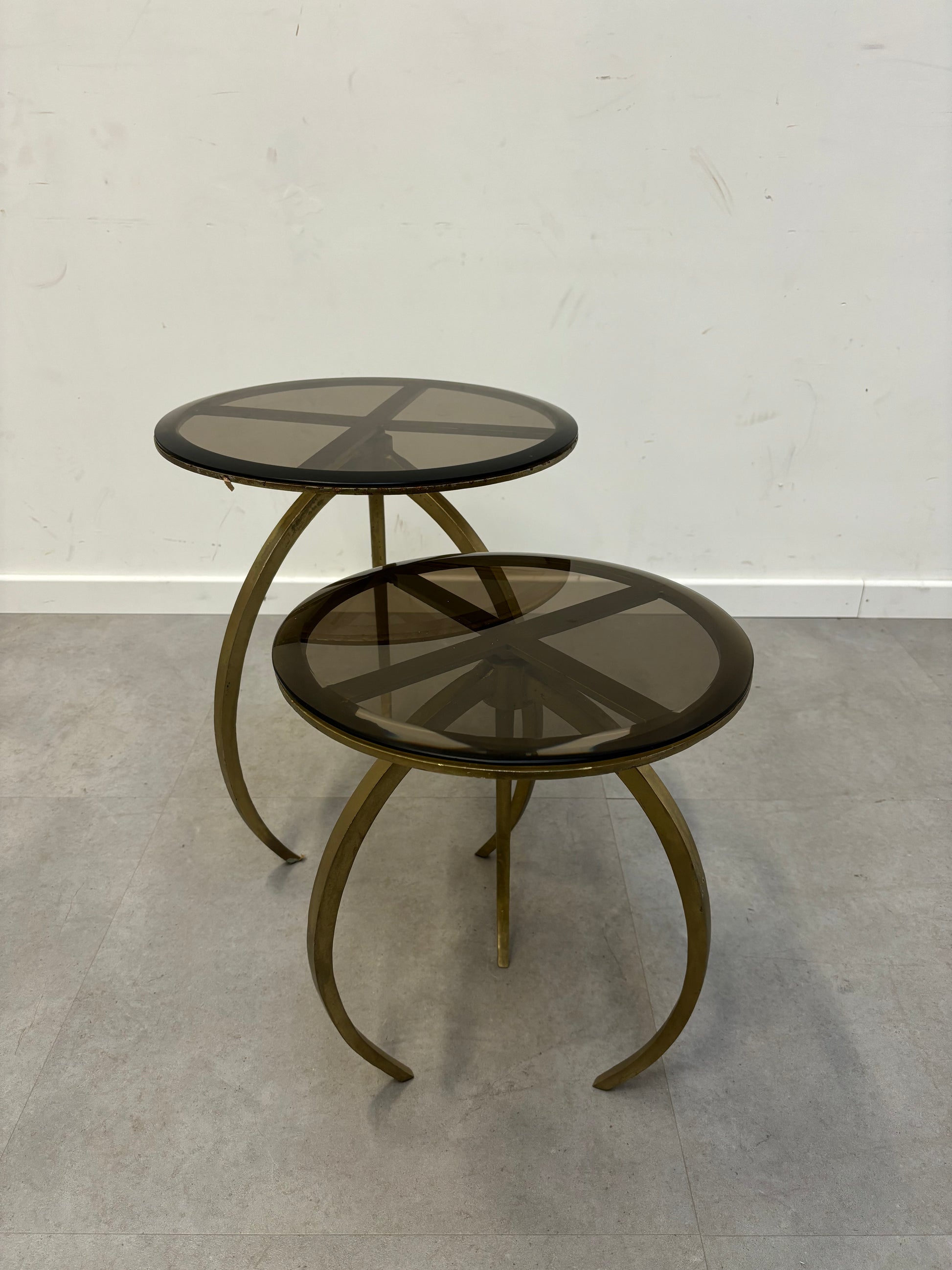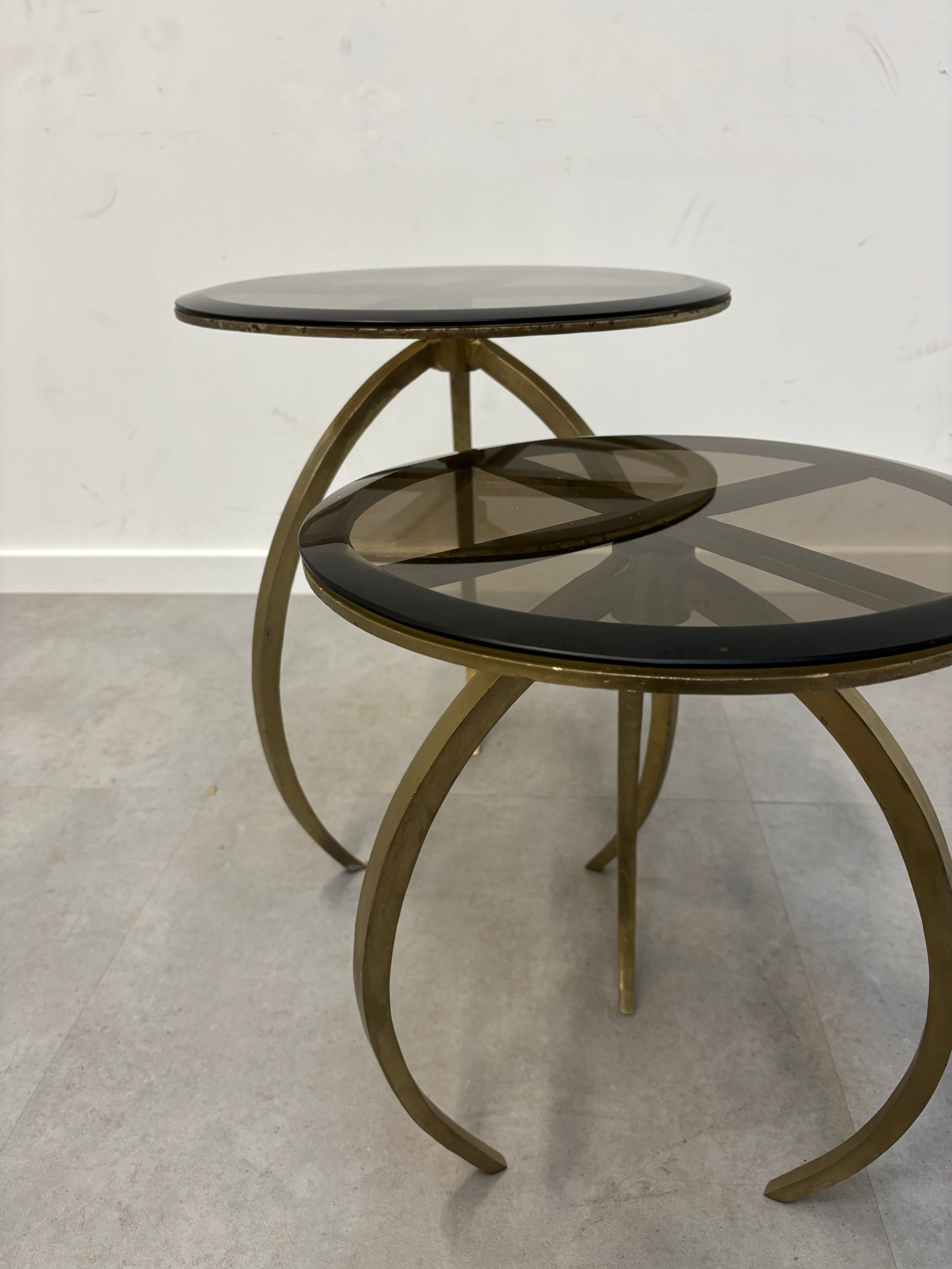 Ensemble de deux tables d'appoint en bronze avec plateau en verre.