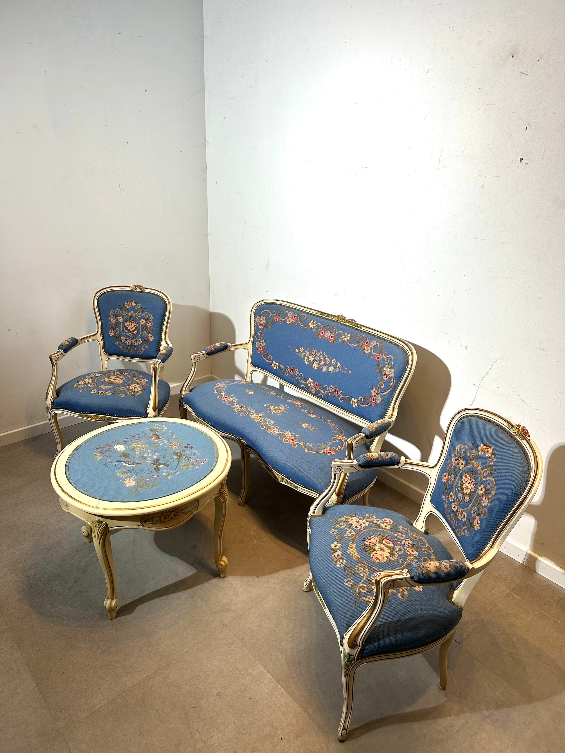 Ensemble de salon vintage de style Louis XV français – Table assortie