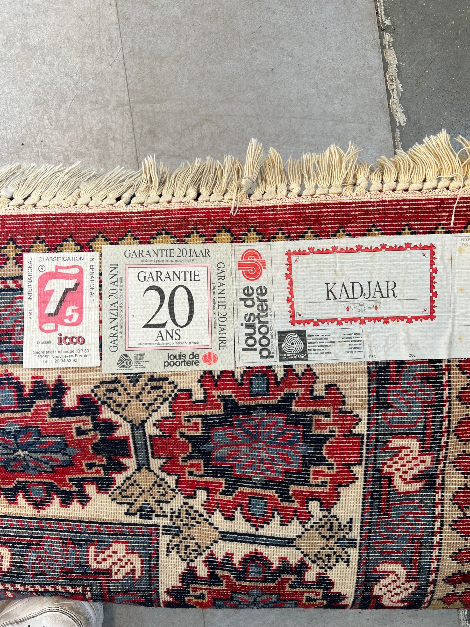 Produced in Belgium and originally sold with a 20-year guarantee label. High-quality wool pile with durable construction.