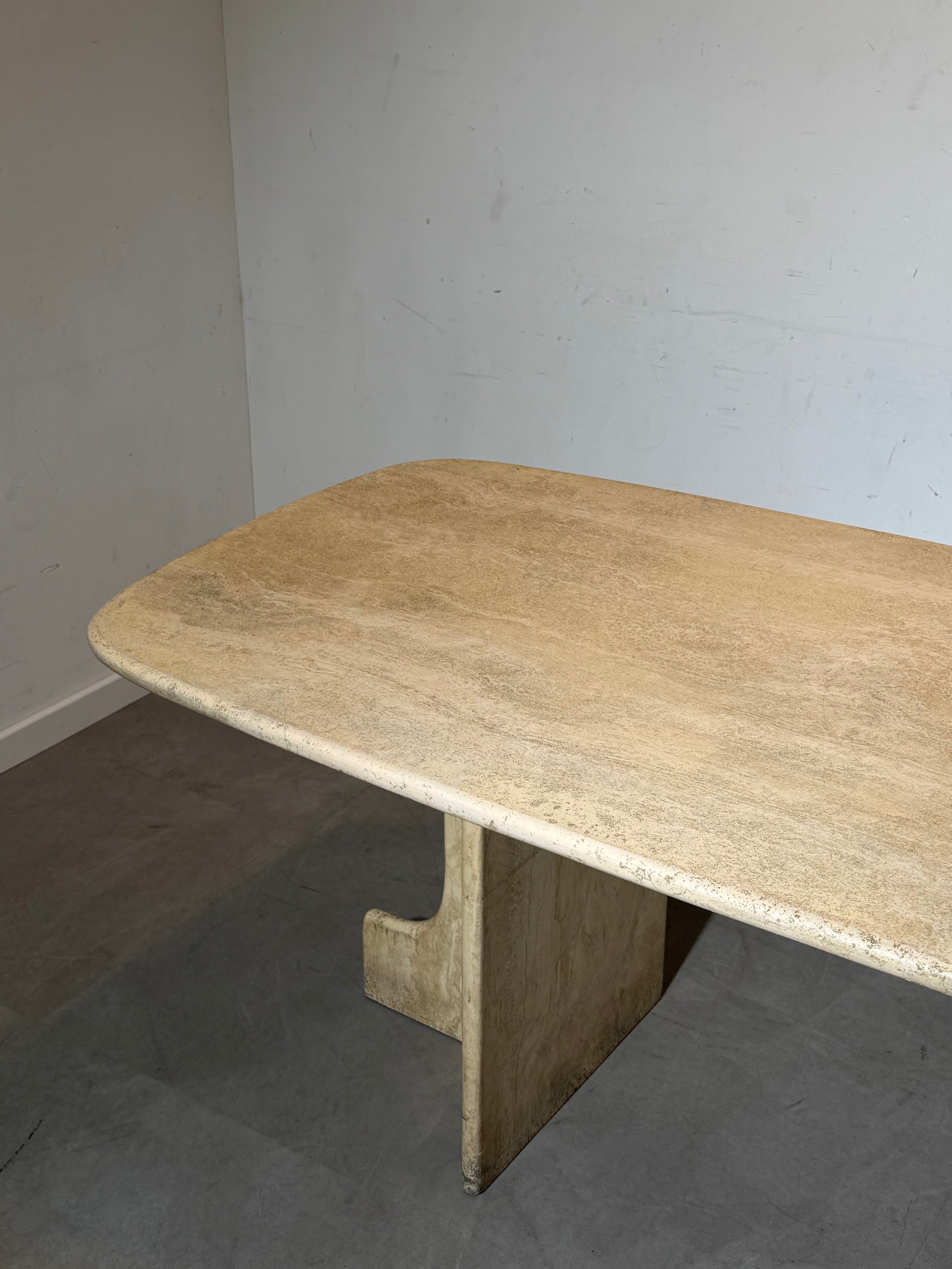 Vintage Travertine Dining Table – Sculptural Base – 180 cm