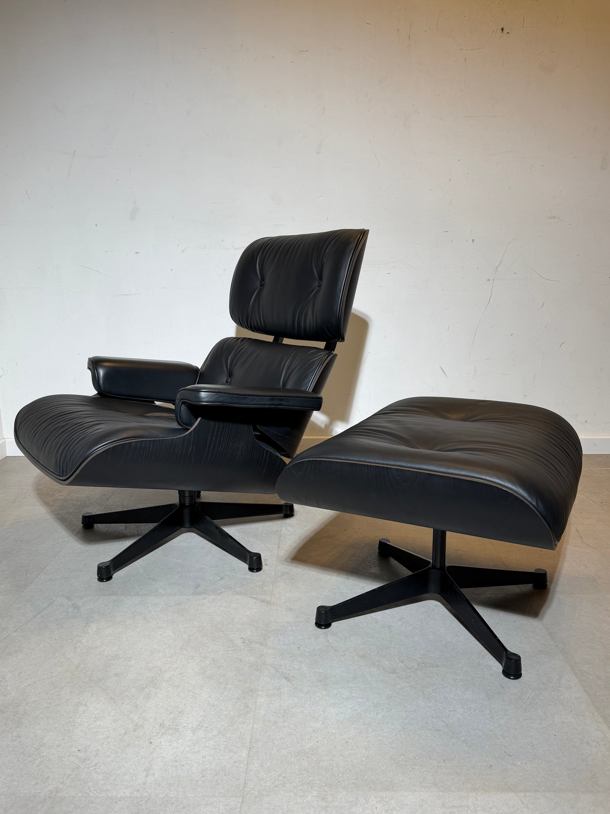 Une occasion rare d'acquérir un fauteuil lounge Eames XL original de Vitra avec son ottoman assorti, dans la très recherchée édition All Black.