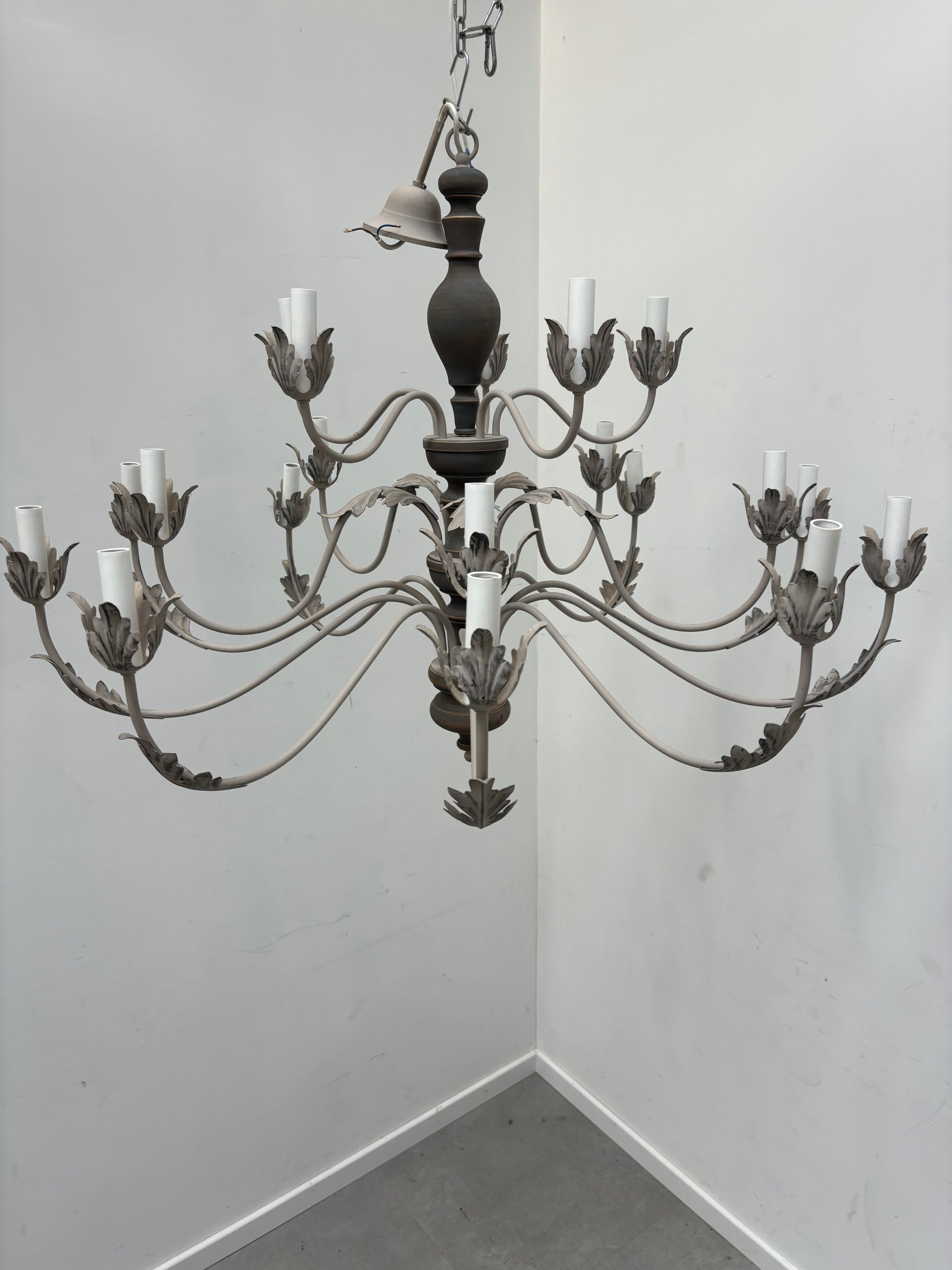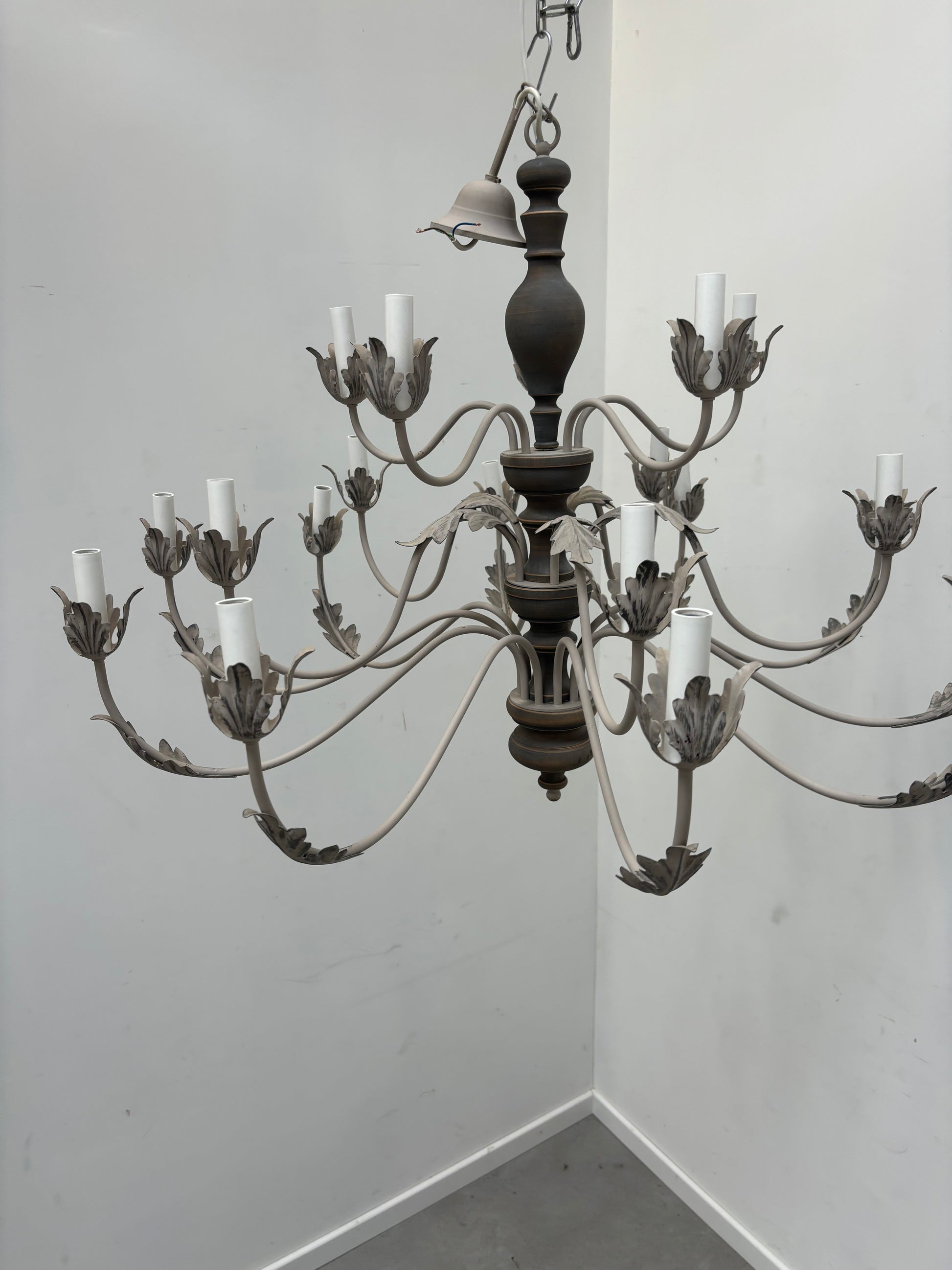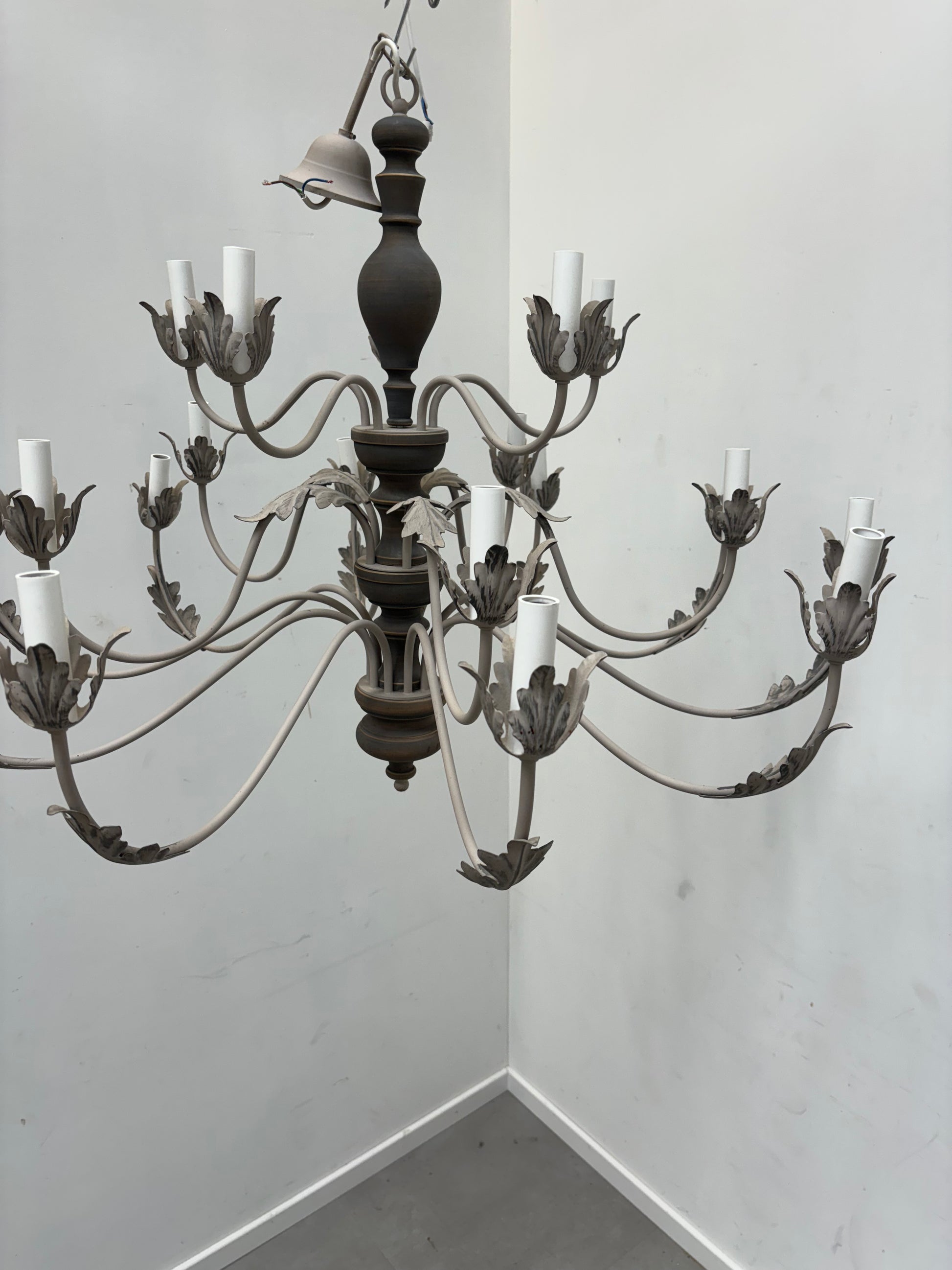 Kroonluchter in rustieke stijl, vervaardigd uit smeedijzer.