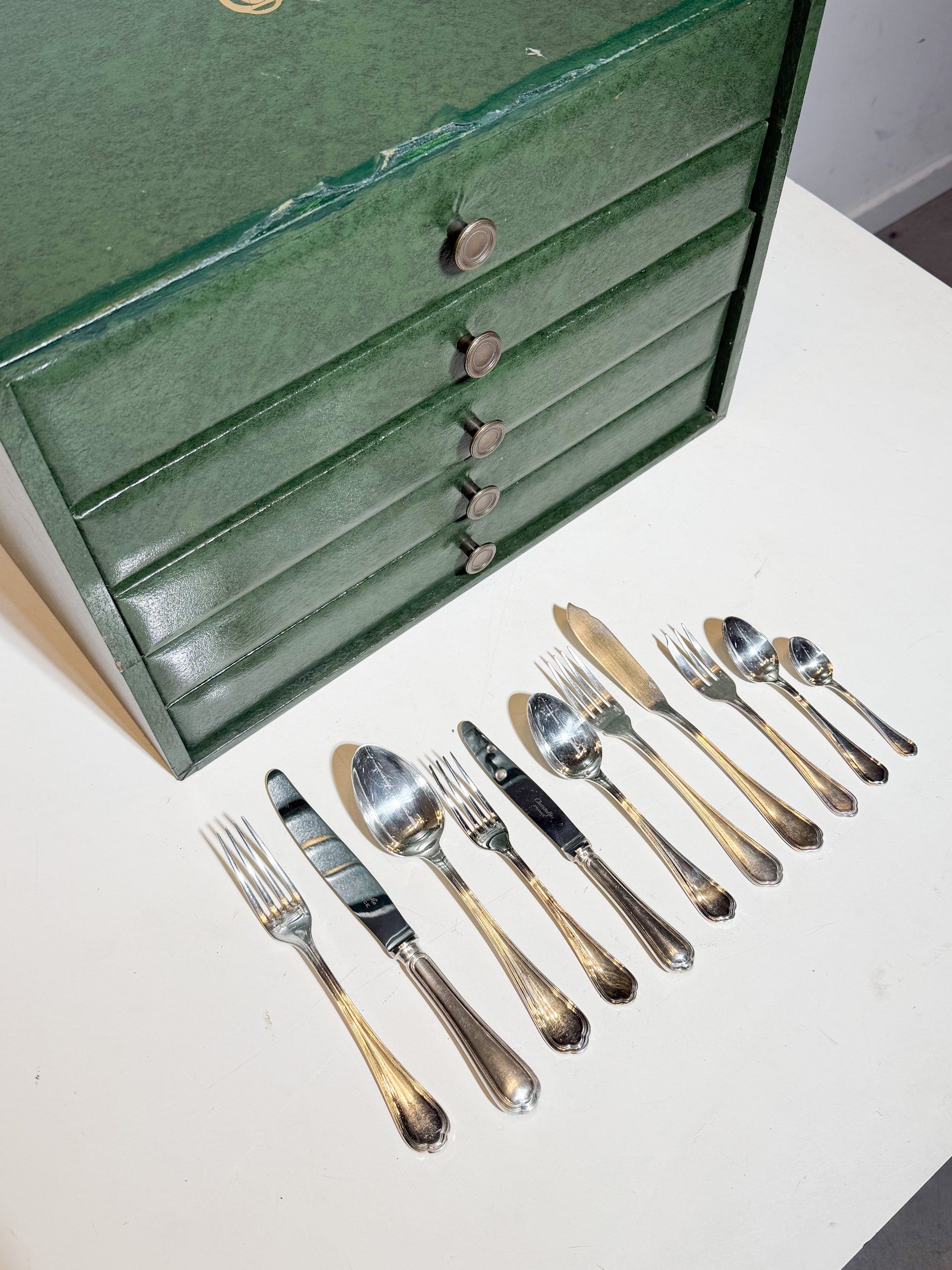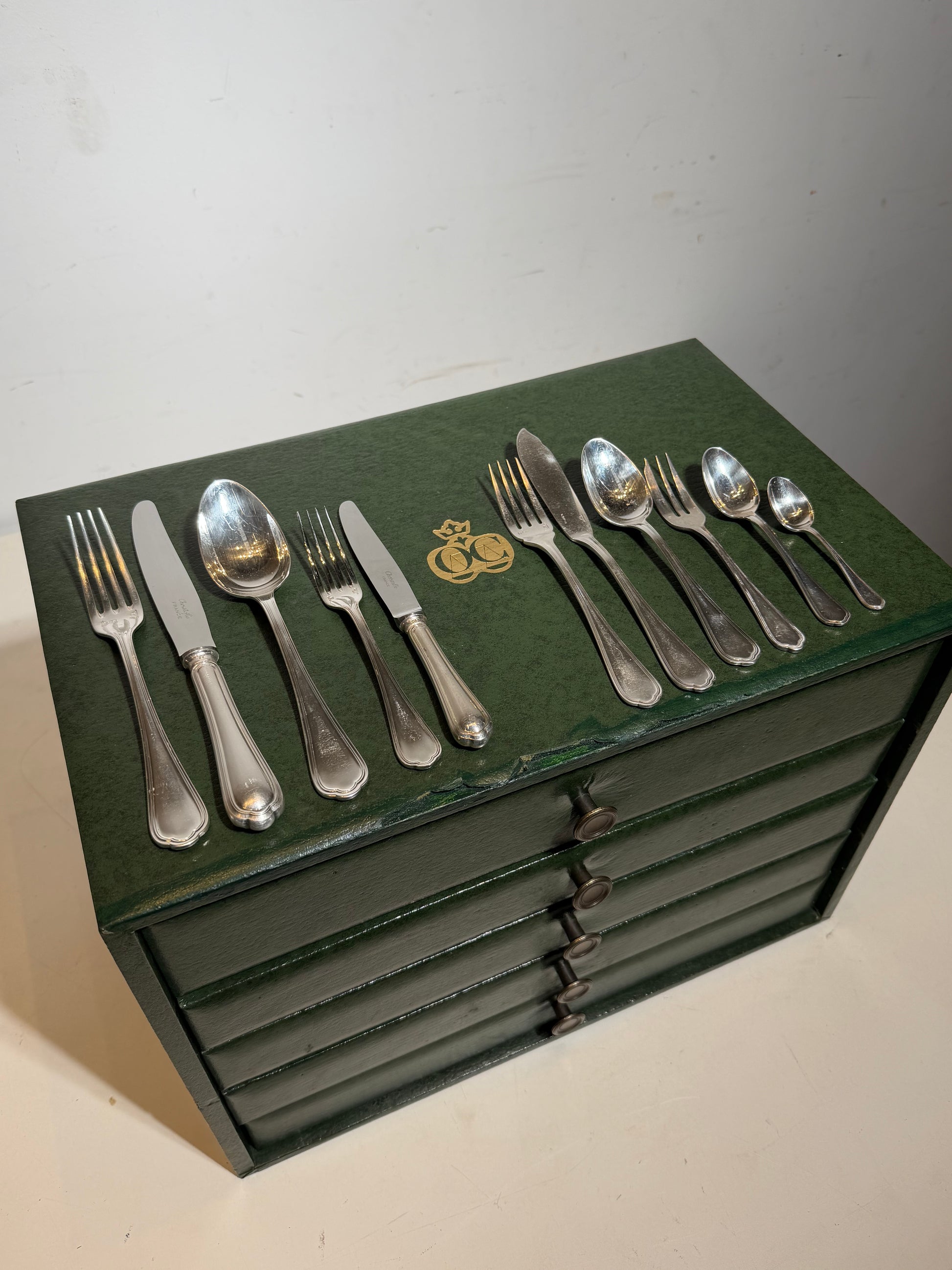 Christofle “Spatours” verzilverd bestekset – 144 stuks met originele anti-oxidatie opbergkist