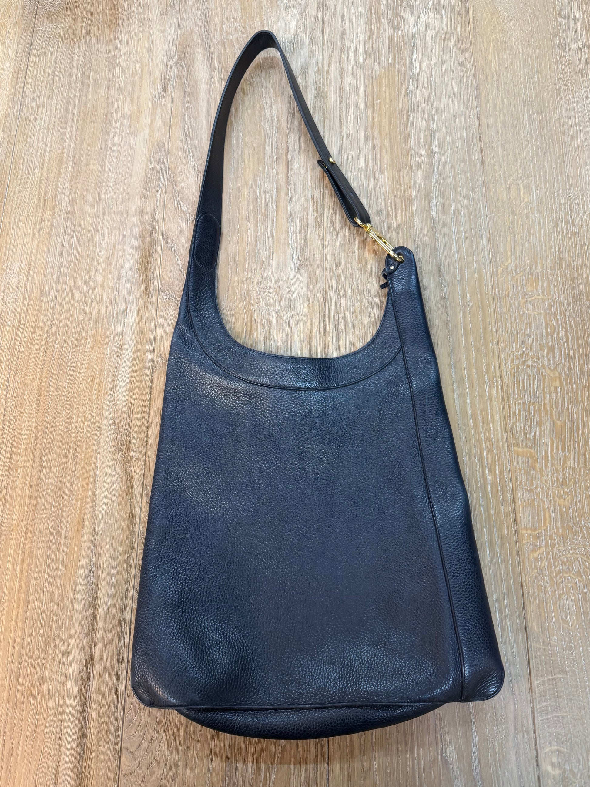 Beautiful and timeless Delvaux “Jongleur” shoulder bag in elegant navy blue grained leather. This iconic oversized model is known for its soft, slouchy shape and comfortable shoulder strap, making it the perfect everyday luxury bag.