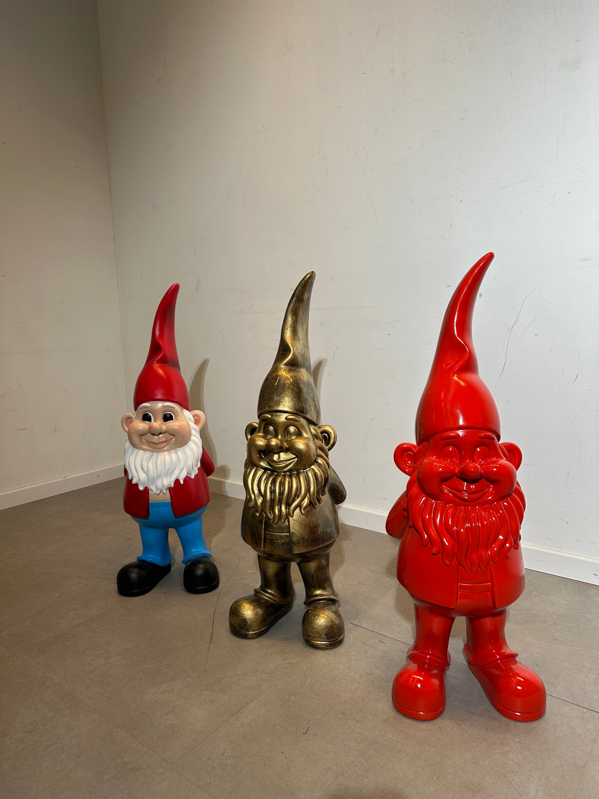 Geef uw ruimte een vleugje luxe met deze opvallende gouden metallic tuinkabouter! Deze stijlvolle en unieke kabouter is maar liefst 98 cm hoog en is ontworpen om de aandacht te trekken, of het nu in uw tuin, hal of zelfs als blikvanger binnenshuis is.