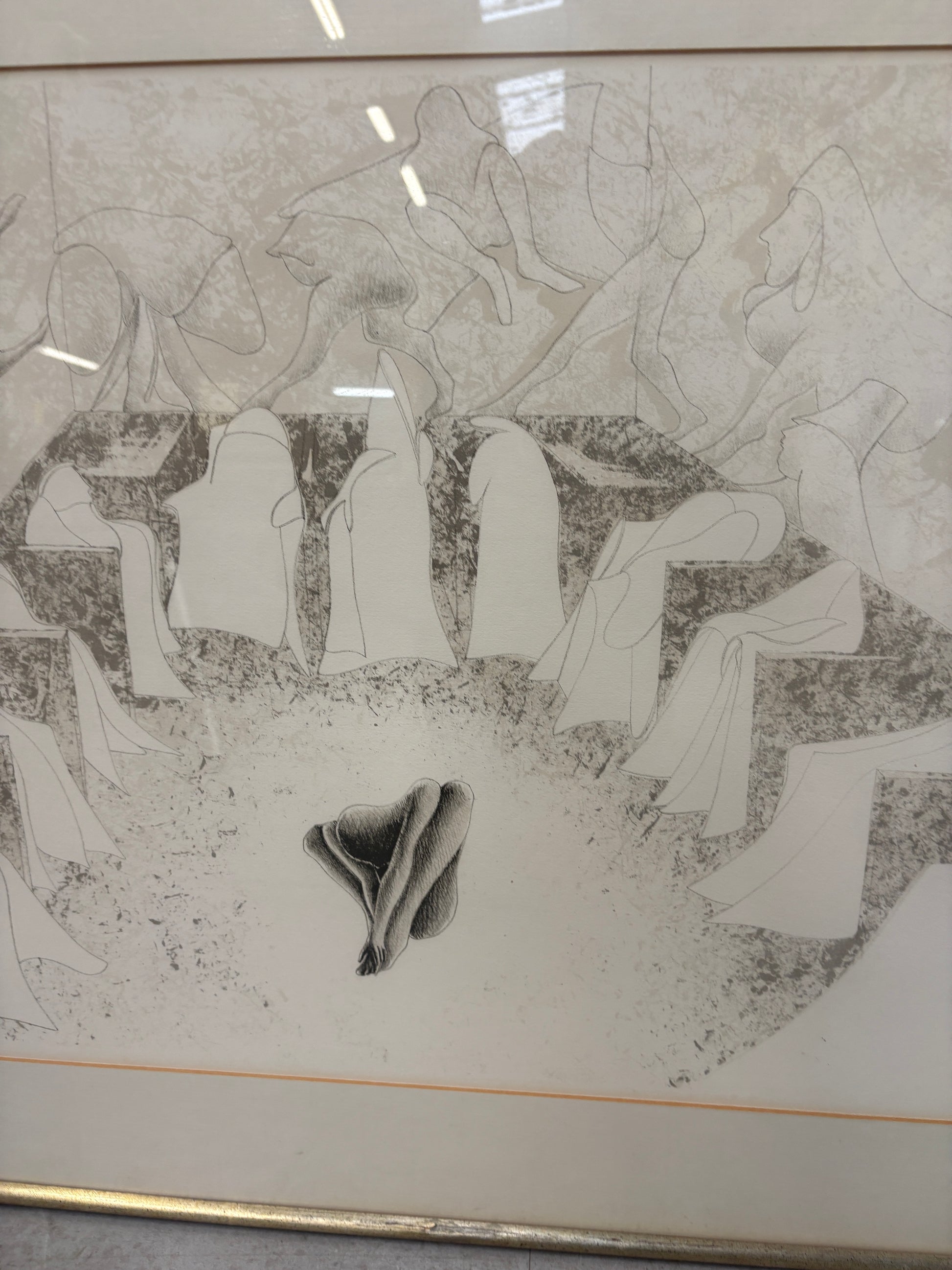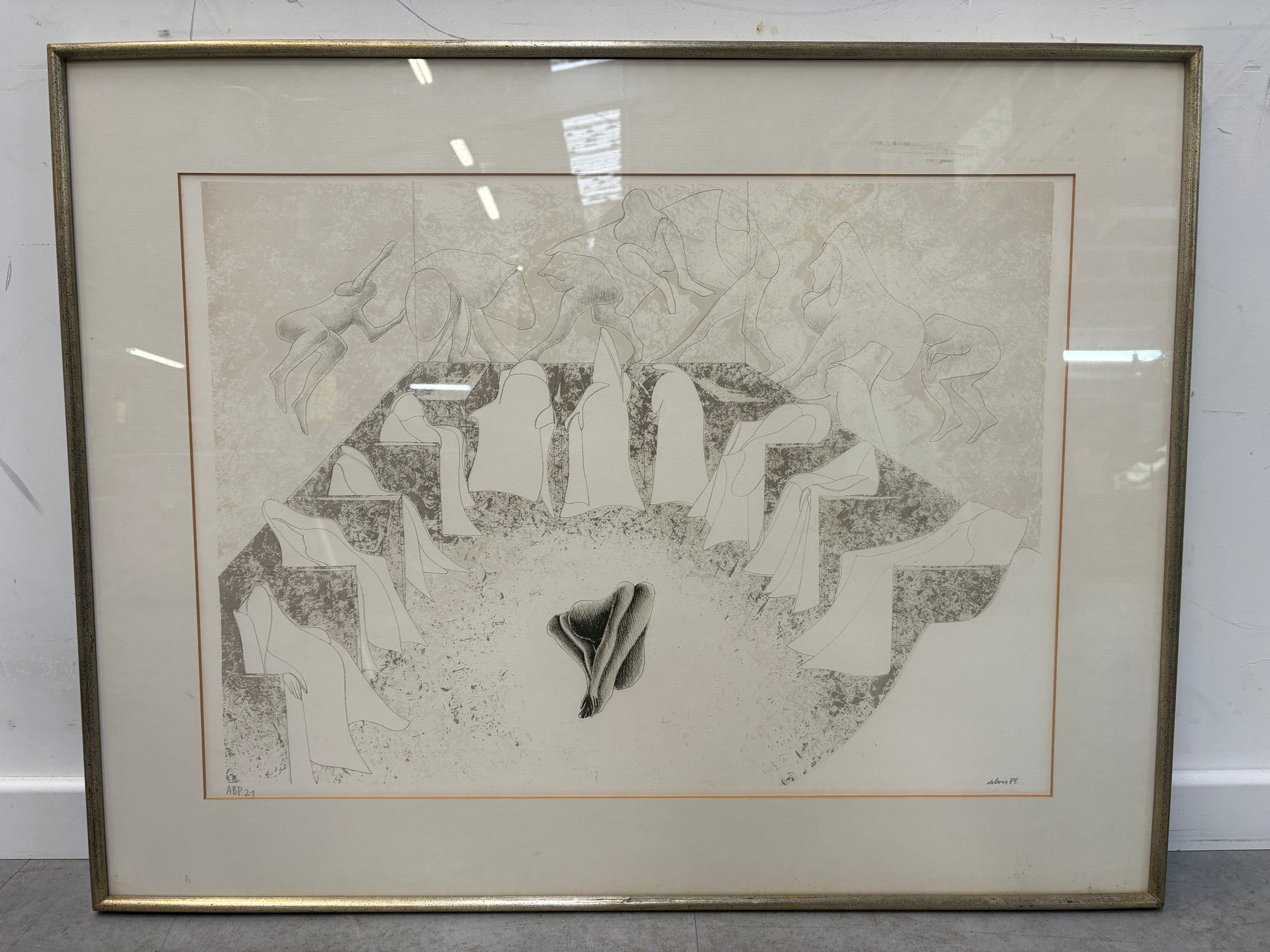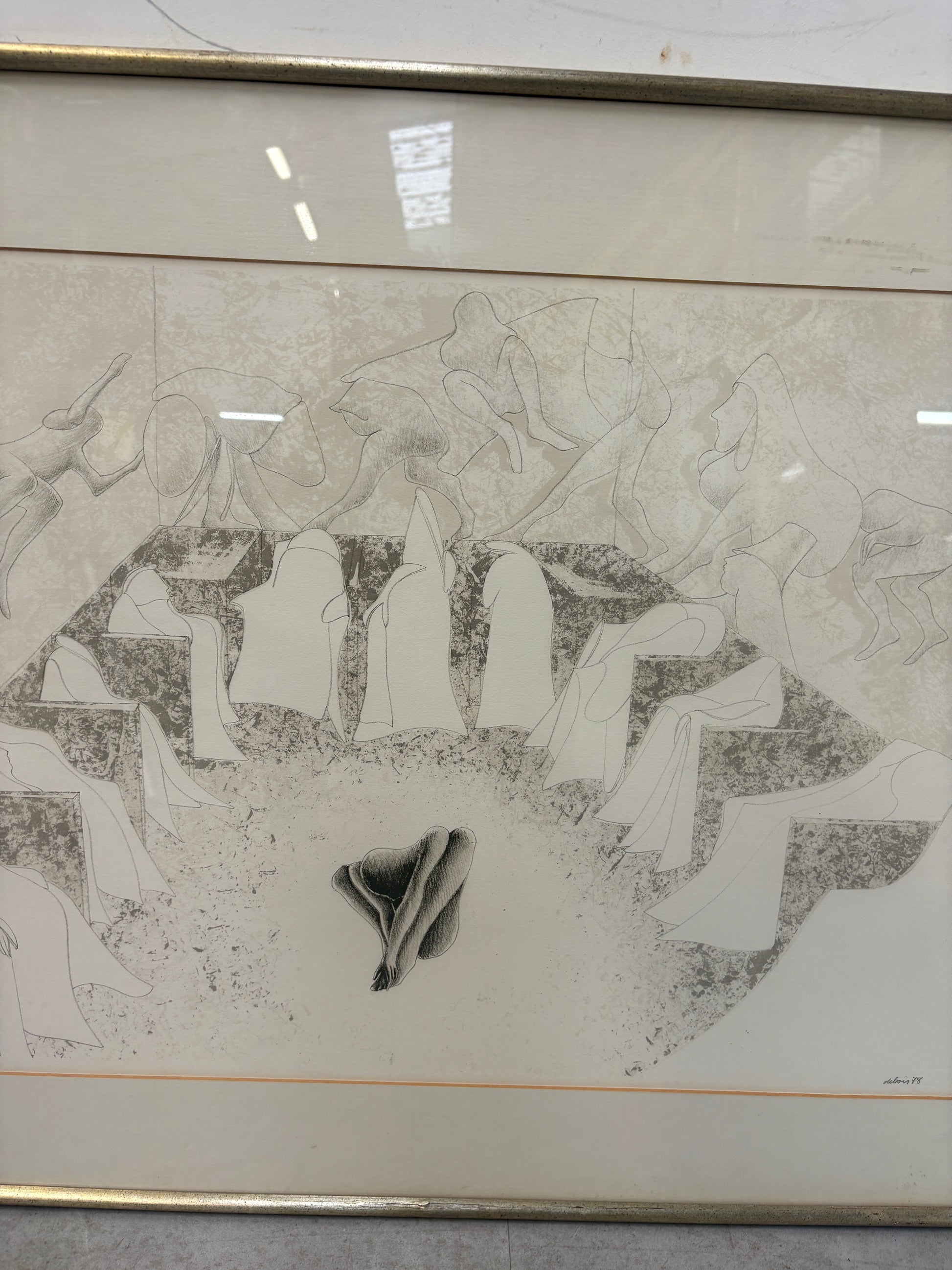 Prachtige en expressieve originele tekening van de Belgische kunstenaar Albert Debois , bekend om zijn verfijnde lijnvoering, emotionele diepgang en poëtische stijl. Debois behoort tot de generatie naoorlogse Belgische kunstenaars die klassieke tekentechnieken combineerden met modernistische abstractie.