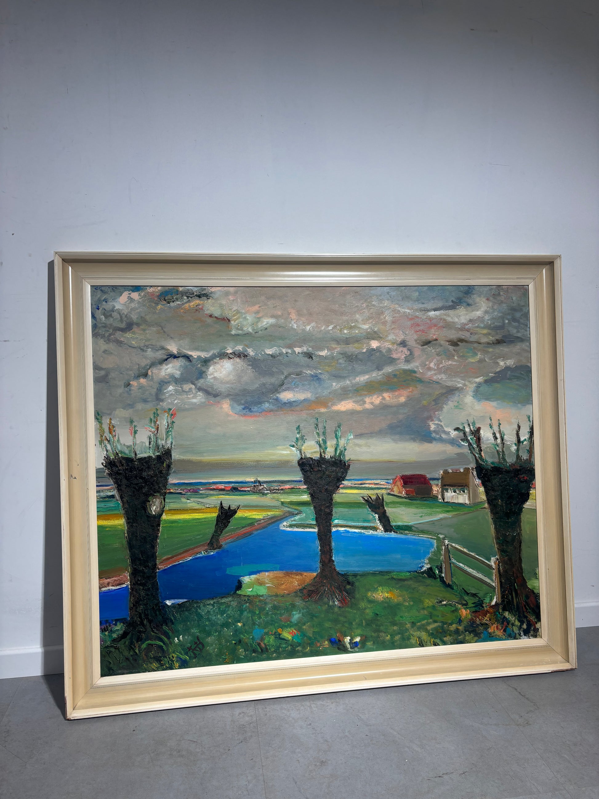 Olieverf op doek - “De Drie Wilgen” van Gaston Theunynck