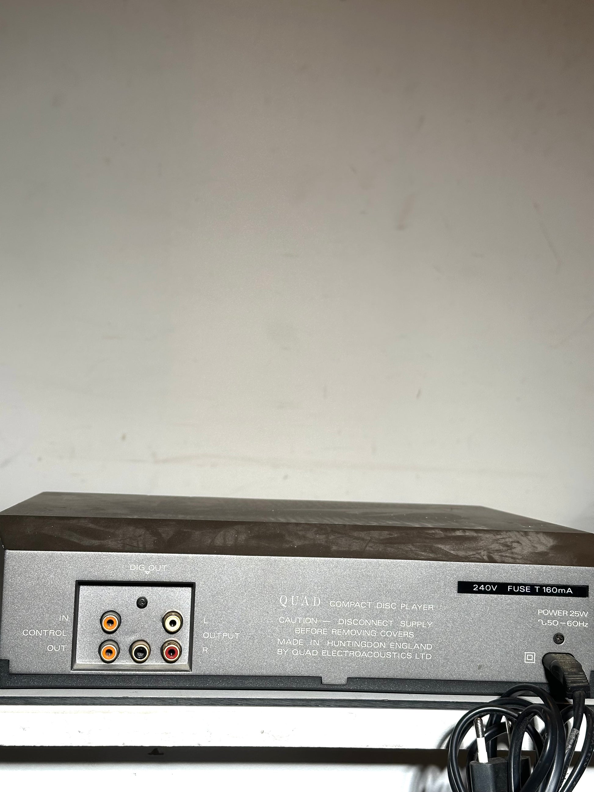 Uitgevoerd in Quad's kenmerkende grijze aluminium behuizing met minimalistische bedieningselementen – een ware designklassieker uit de gouden eeuw van hifi.