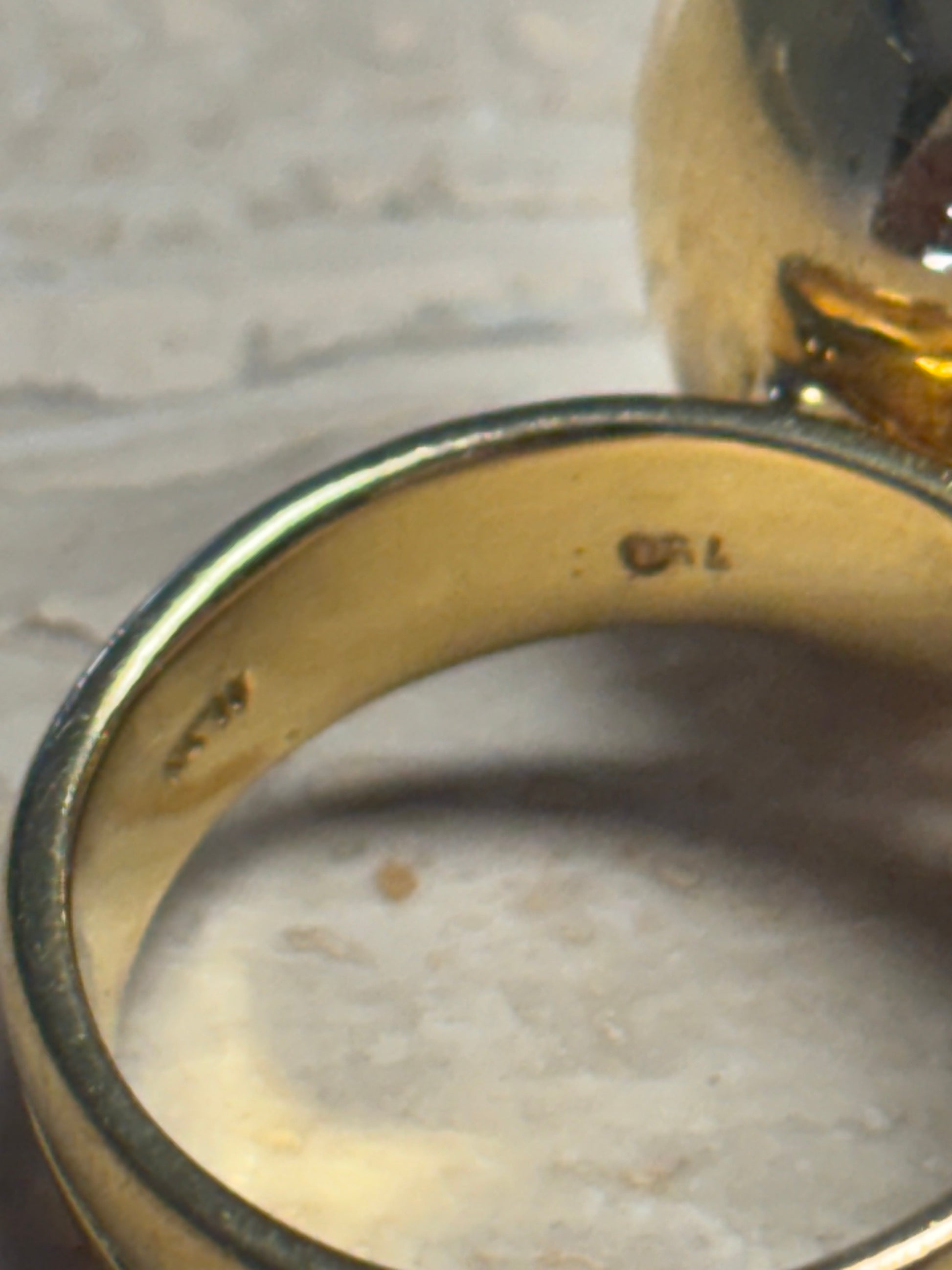 18 kt Gold Ring with Blue Topaz, Garnet & Diamond Accent – Size 55