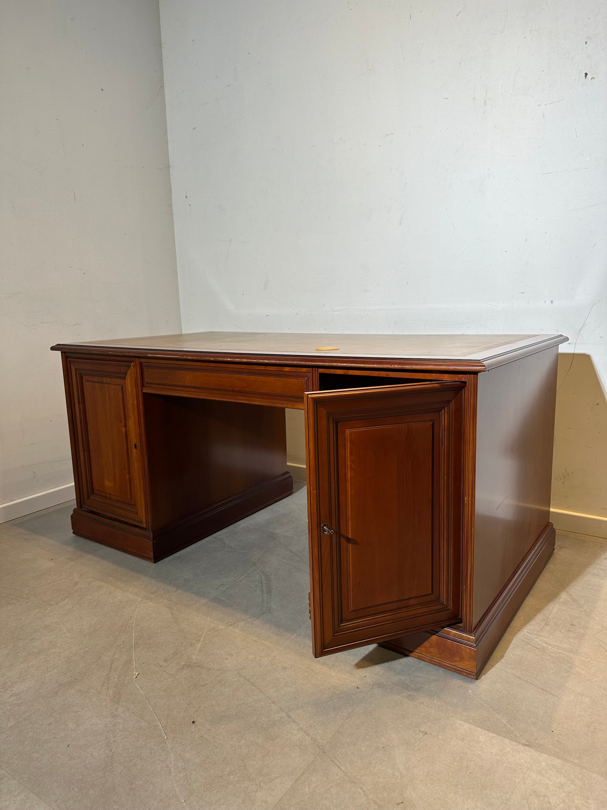 Elegant and substantial classic executive desk, crafted in richly finished wood and featuring a refined leather-inlay writing surface. The desk is designed with two pedestal bases, offering generous storage and a balanced, timeless appearance suitable for both home offices and professional interiors.