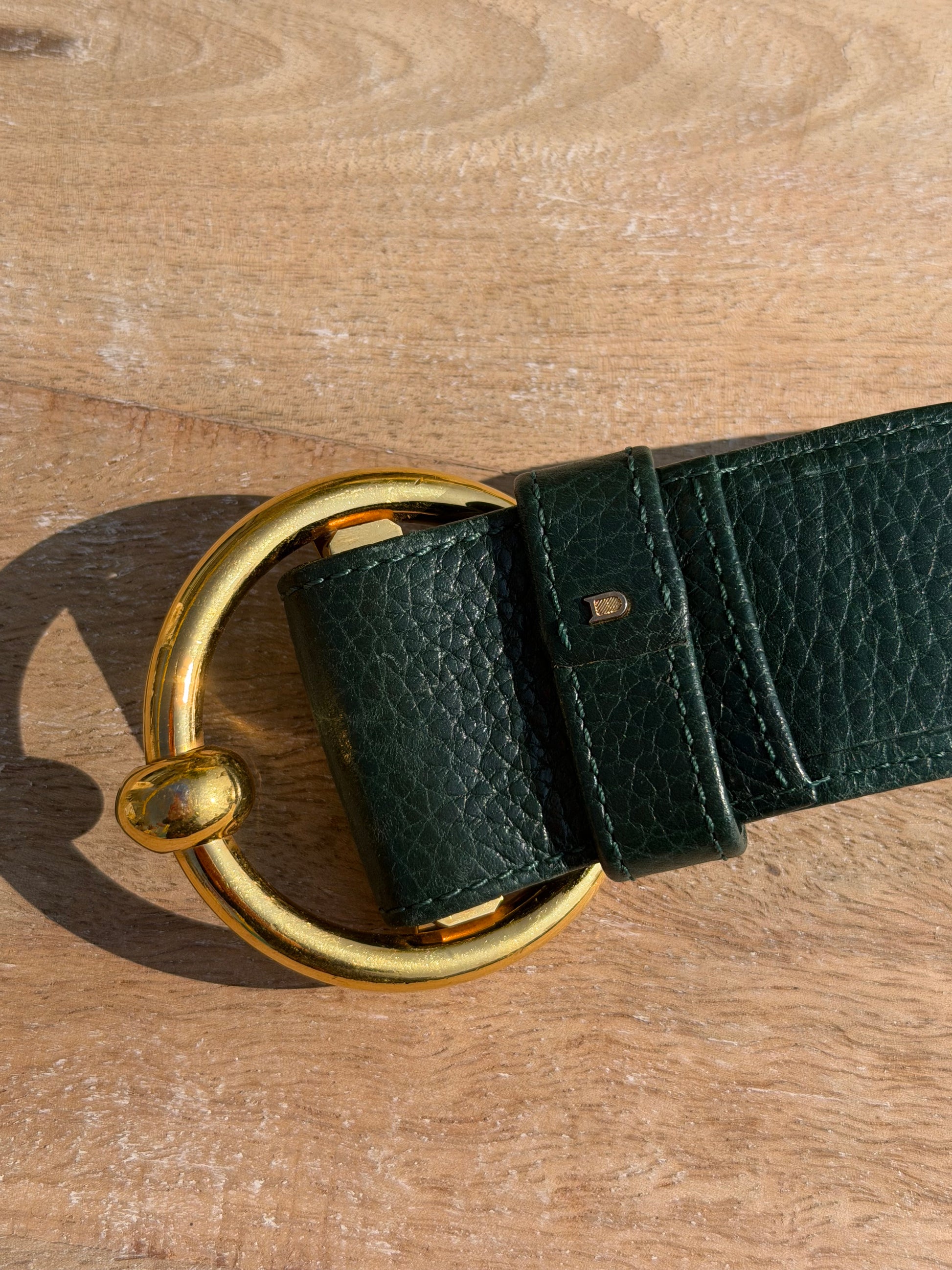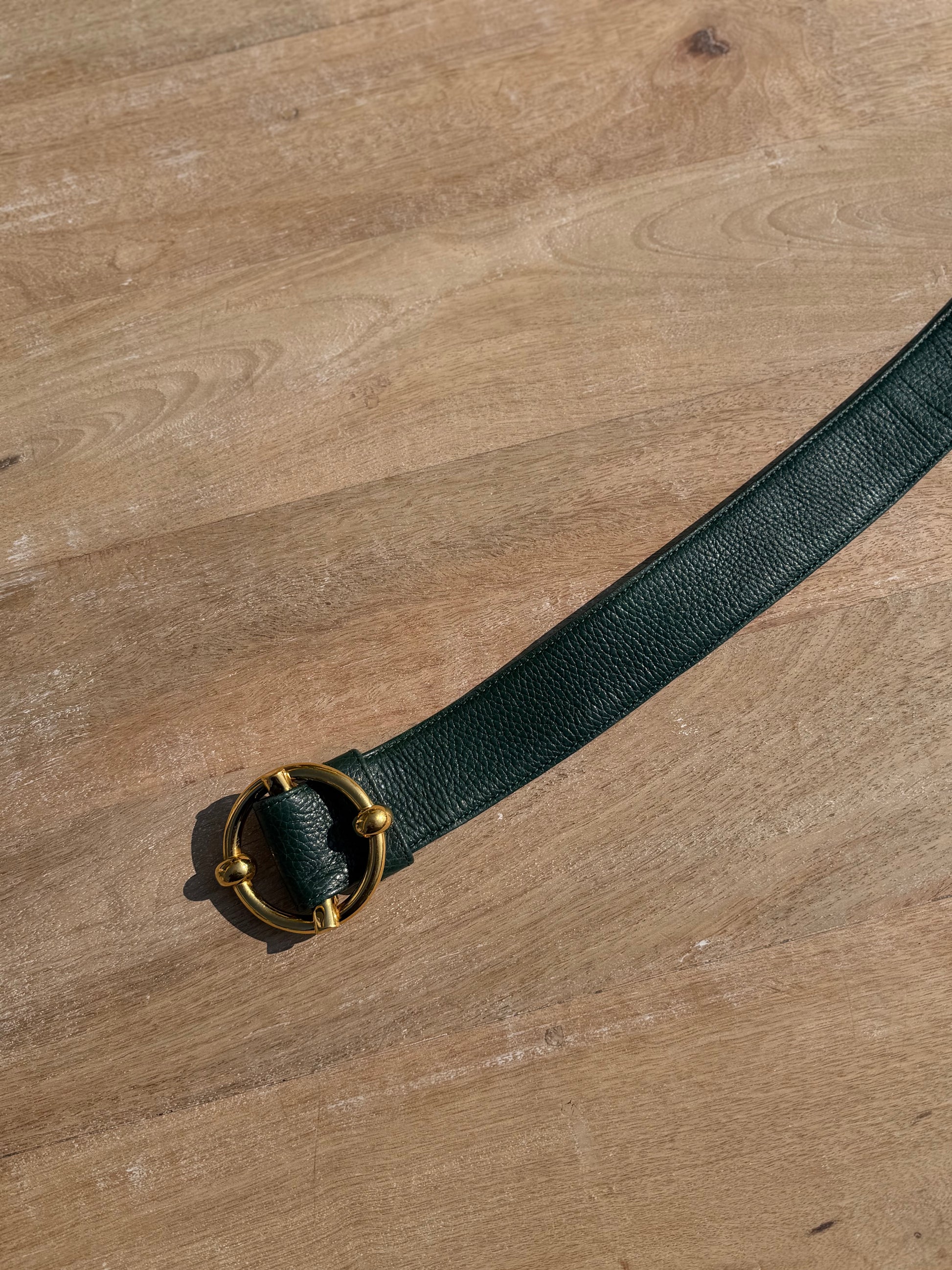 Delvaux Green Leather Buckle Belt – Gold-Tone Hardware – Size 95 cm