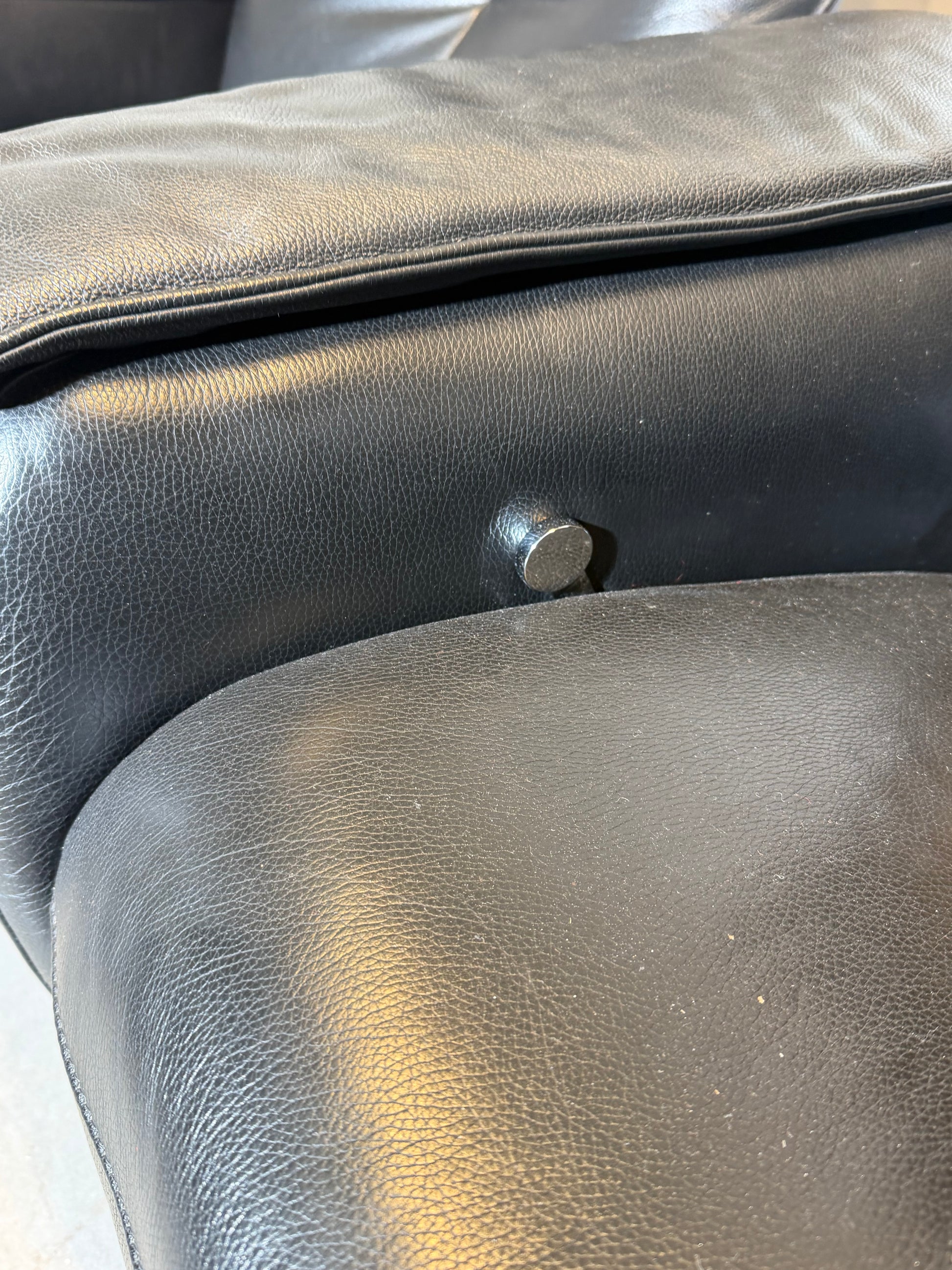 Comfortable duo relax seating set by Elastoform, upholstered in black leather and designed for maximum comfort. These reclining armchairs feature integrated relaxation functions, allowing the backrest to tilt back for a lounge or cinema-style seating position.