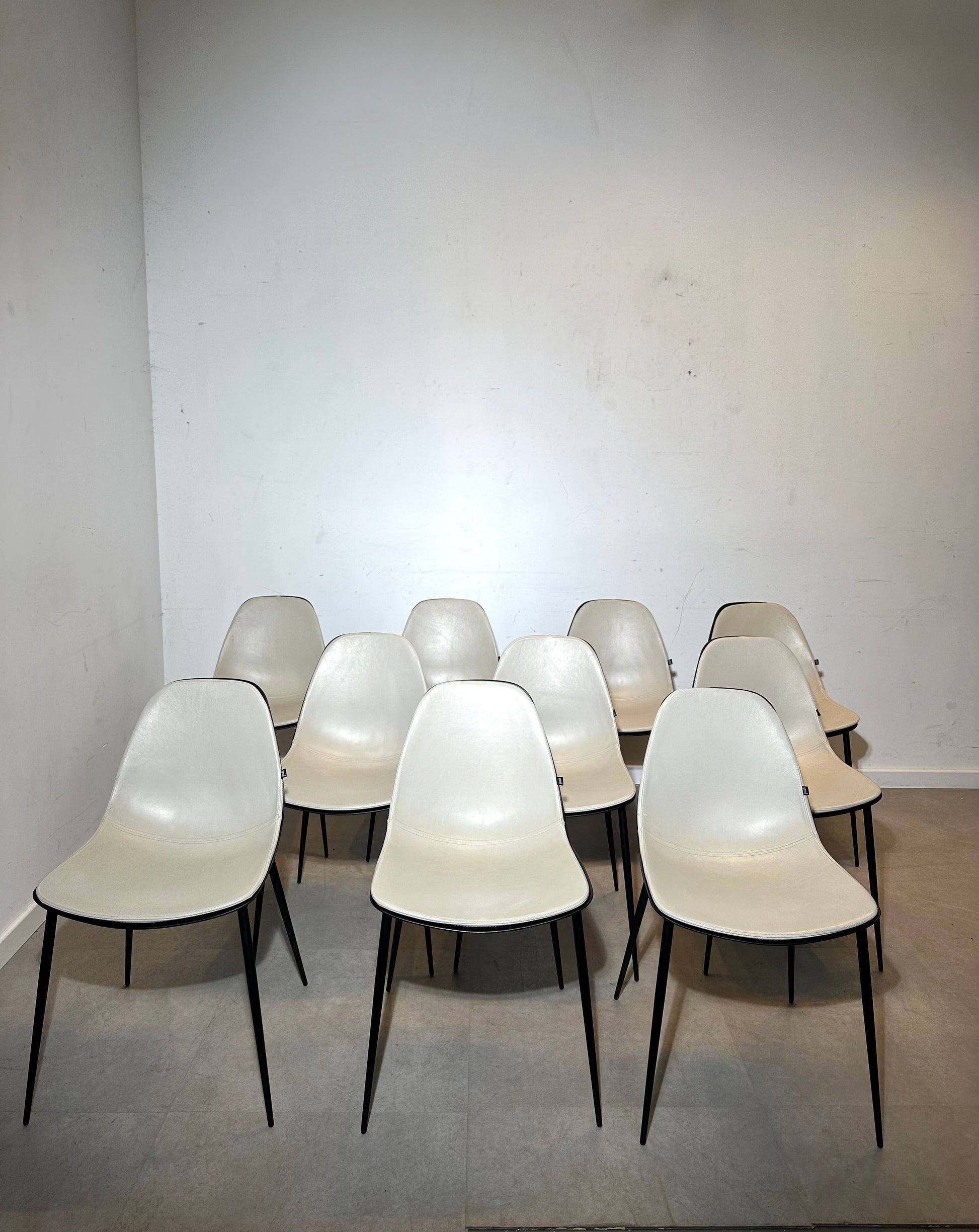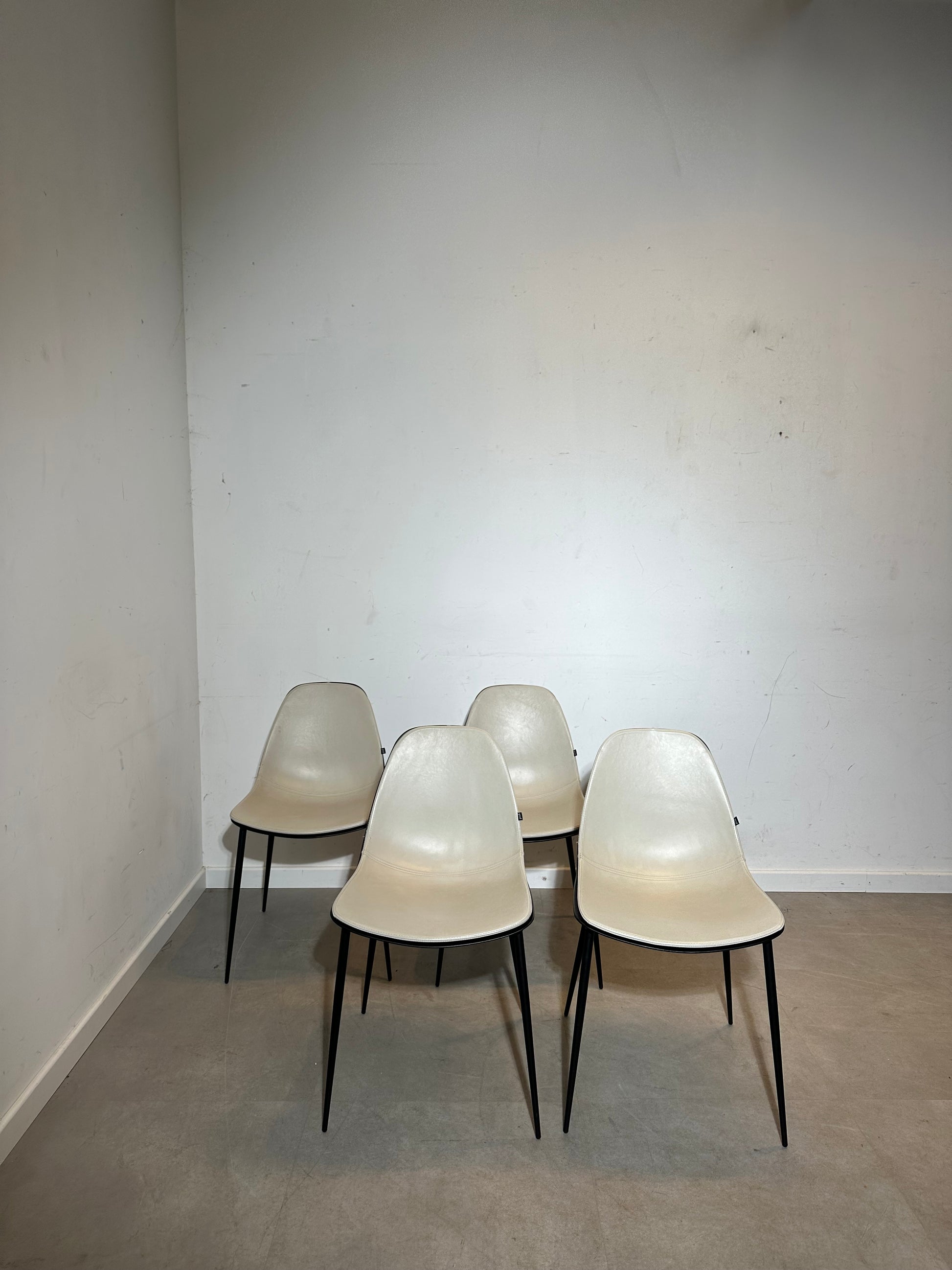 Elegant, comfortable and timeless: this original Joli dining chair features a sleek black lacquered frame combined with a soft pearl leather upholstered seat. The clean silhouette and slightly curved shell make it a perfect match for modern interiors, dining rooms or stylish office settings.