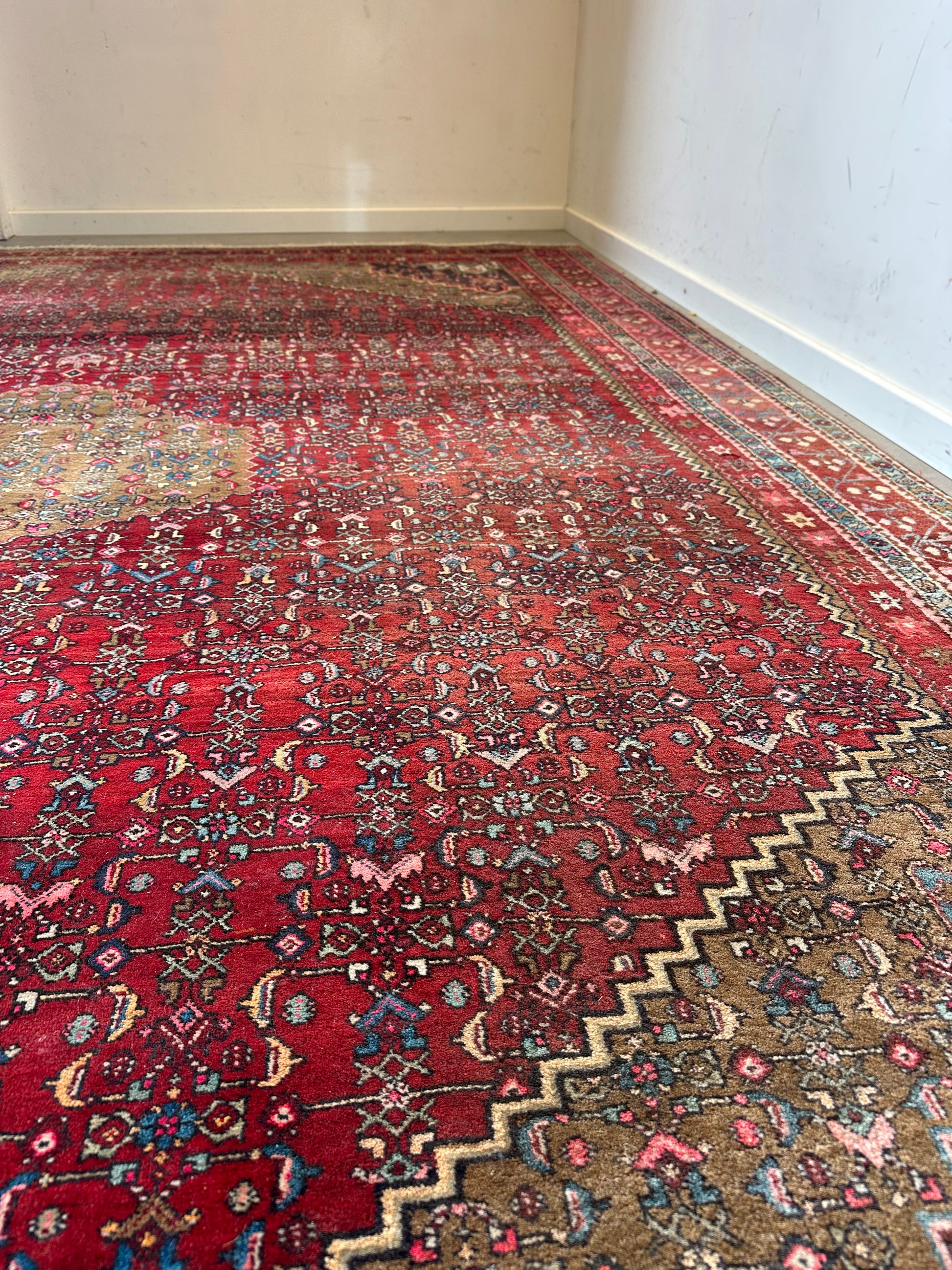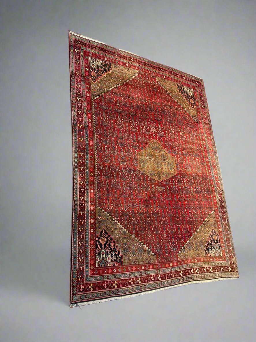 A strong decorative statement piece that works well in living rooms, dining spaces, offices or gallery-style interiors. The dense knotting and traditional pattern give the rug depth and character, while the slightly aged patina adds authenticity and warmth.