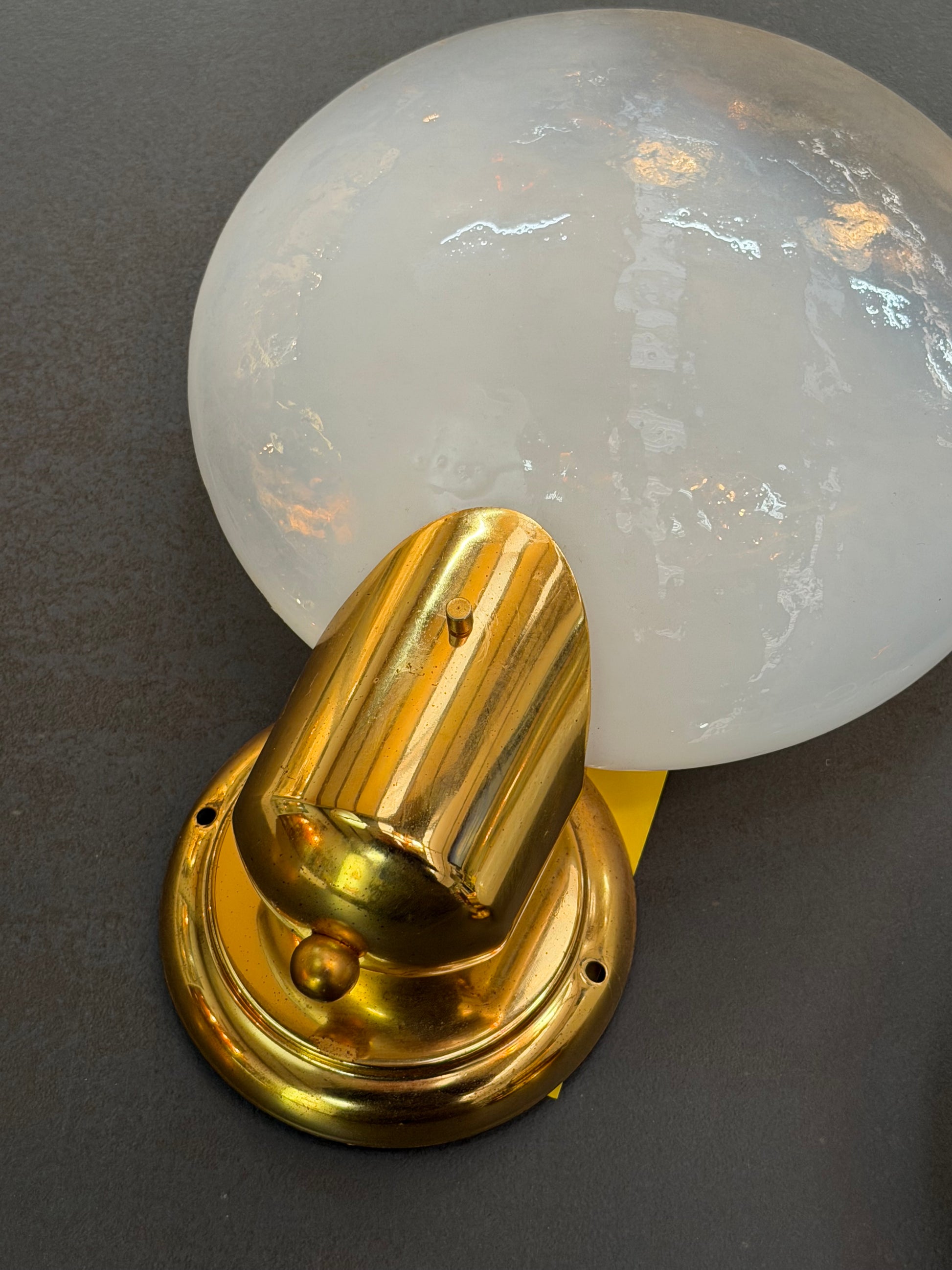 The combination of the polished brass base and the opaline-style globe gives these sconces a chic mid-century look that fits both classic and modern interiors.