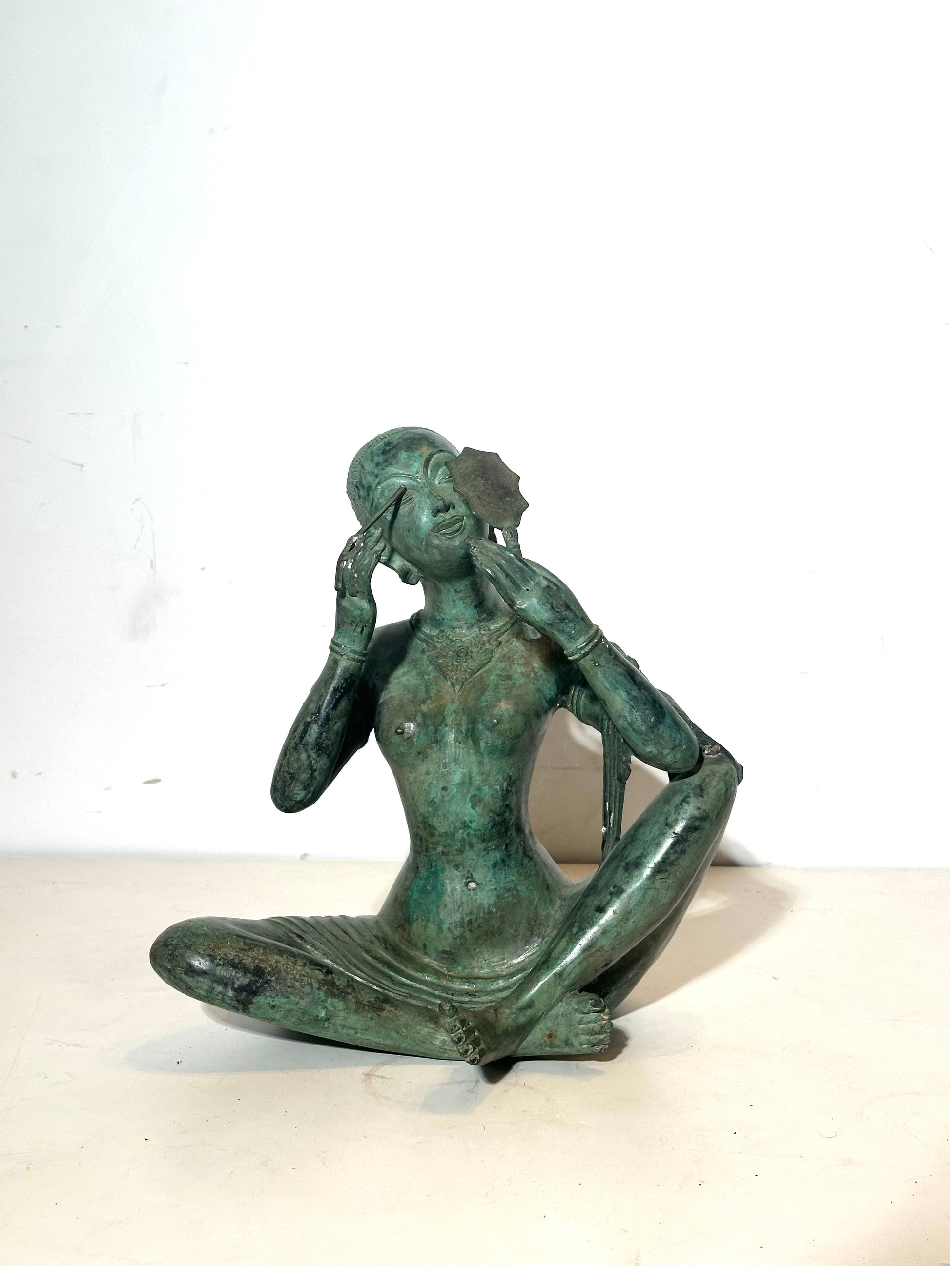 Patinated Bronze Figure – Seated Woman with Mirror