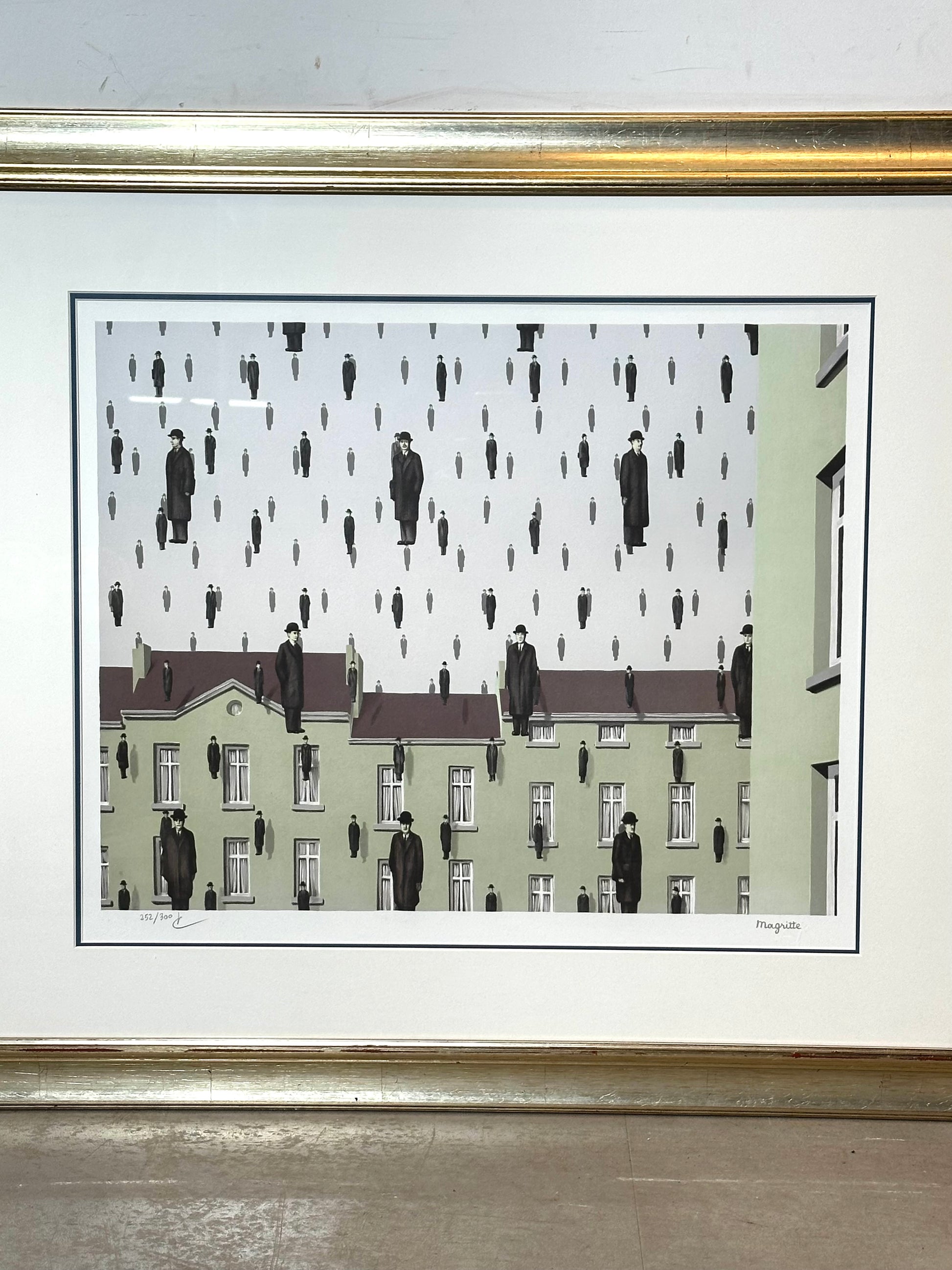 This edition is number 252/300, with the embossed Magritte seal and signature mark on the margin. The artwork is presented behind a double passe-partout and set in a refined gold-toned frame that complements the piece perfectly.