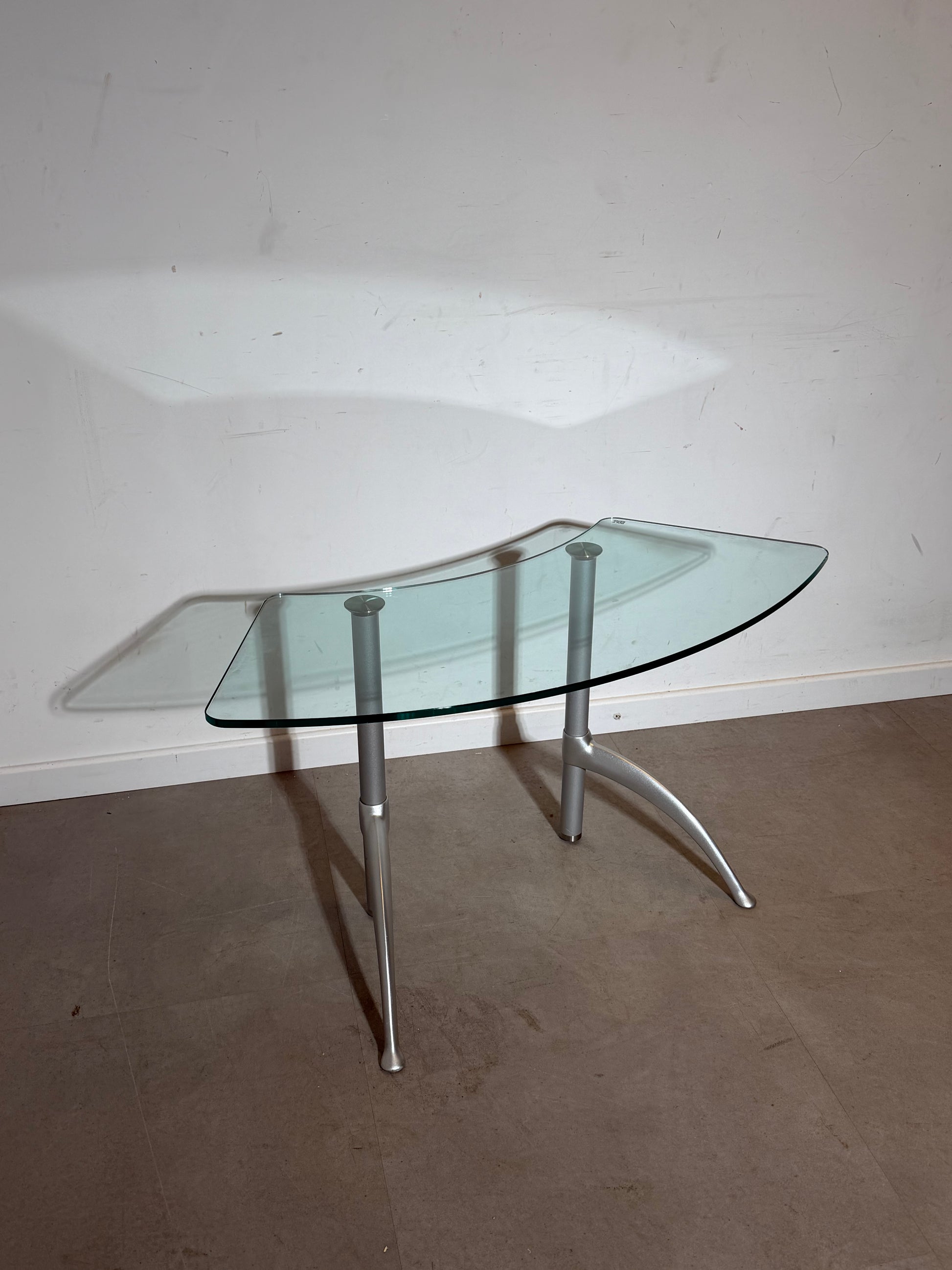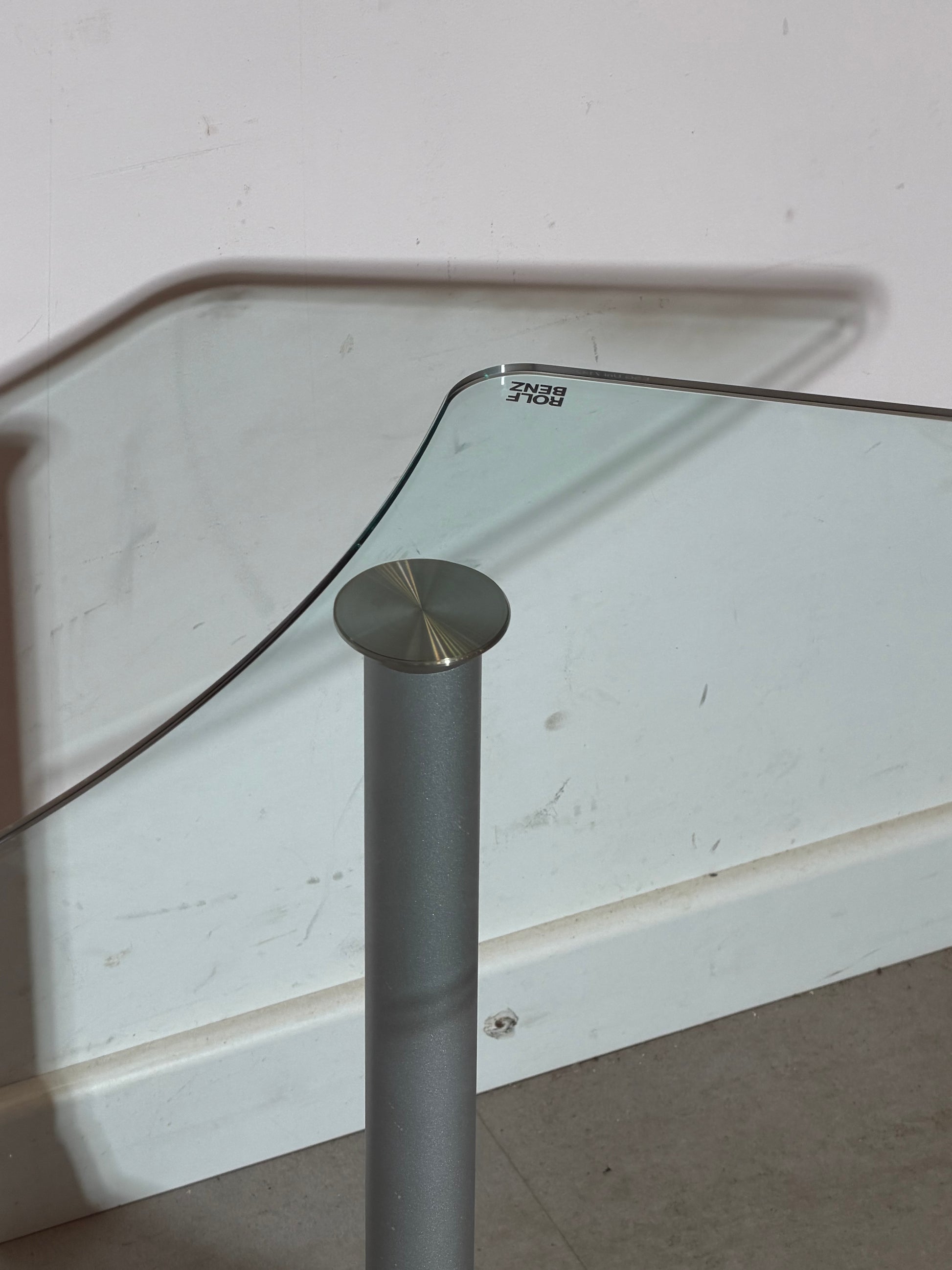 Stylish and modern side table by Rolf Benz with a beautifully shaped glass top and sleek aluminium legs. The organic curved design gives it a light, elegant look while still feeling sturdy and high quality. Perfect as a sofa side table, hallway console, or as an accent piece in a contemporary interior.