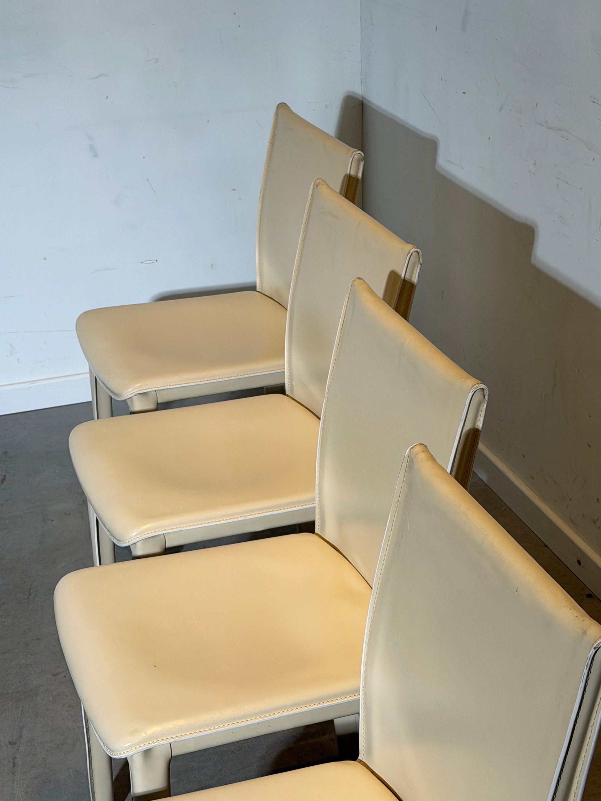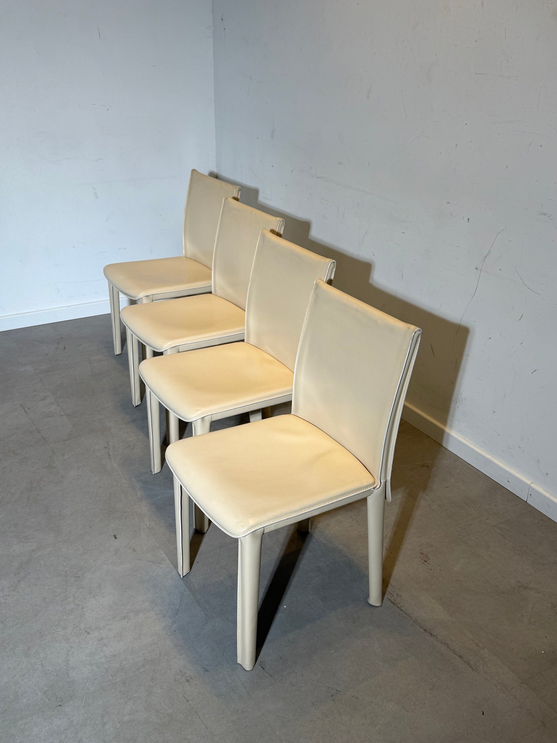Set of 4 Arper Dining Chairs – Off White Leather – Italian Design