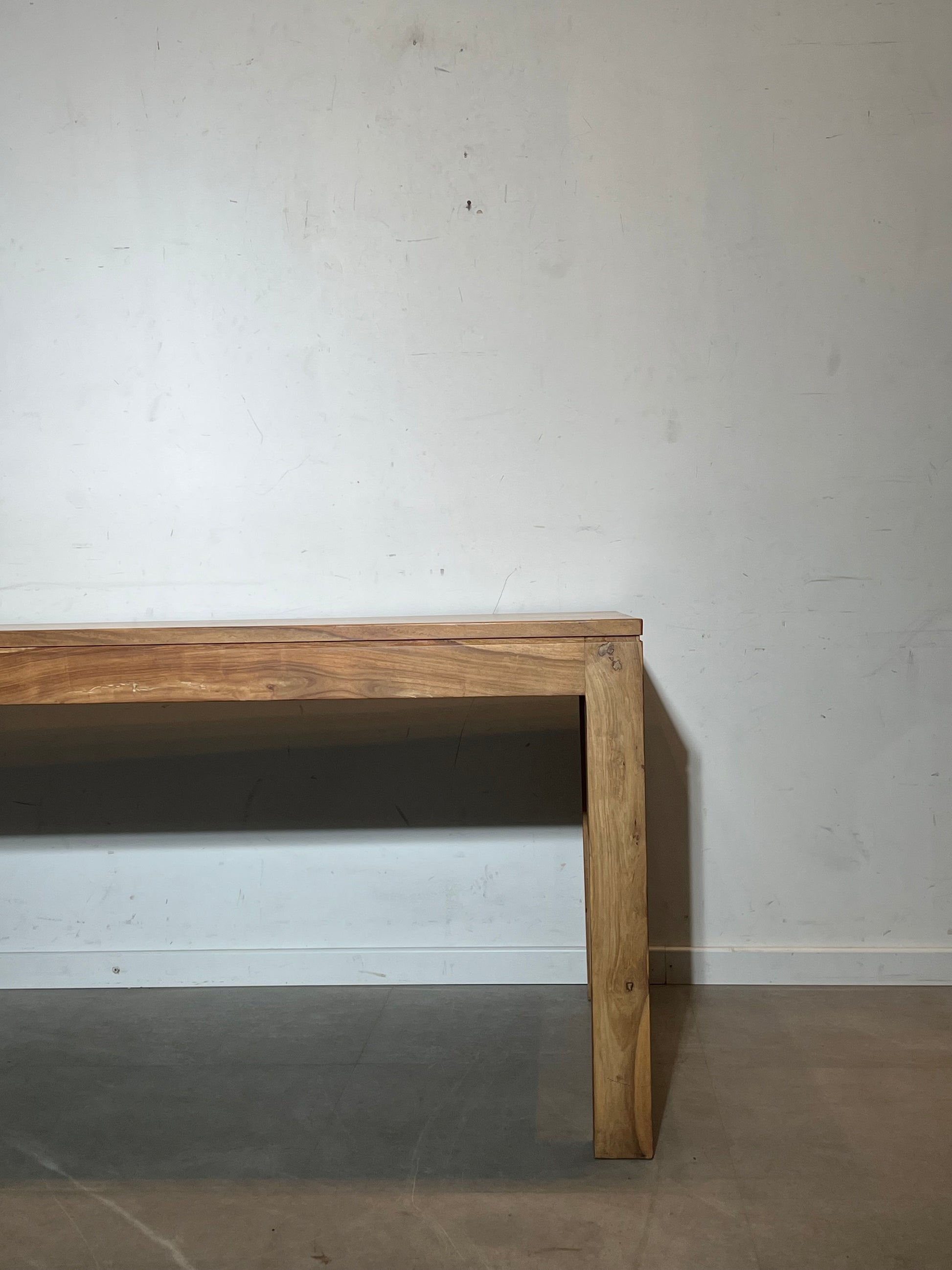 Beautiful solid wood dining table with a warm, natural grain and clean, minimalist lines. The thick top and sturdy square legs give it a timeless look that works in modern, rustic, Scandinavian, and contemporary interiors. Ideal as a dining table for daily use, but also great as a large workspace or meeting table.