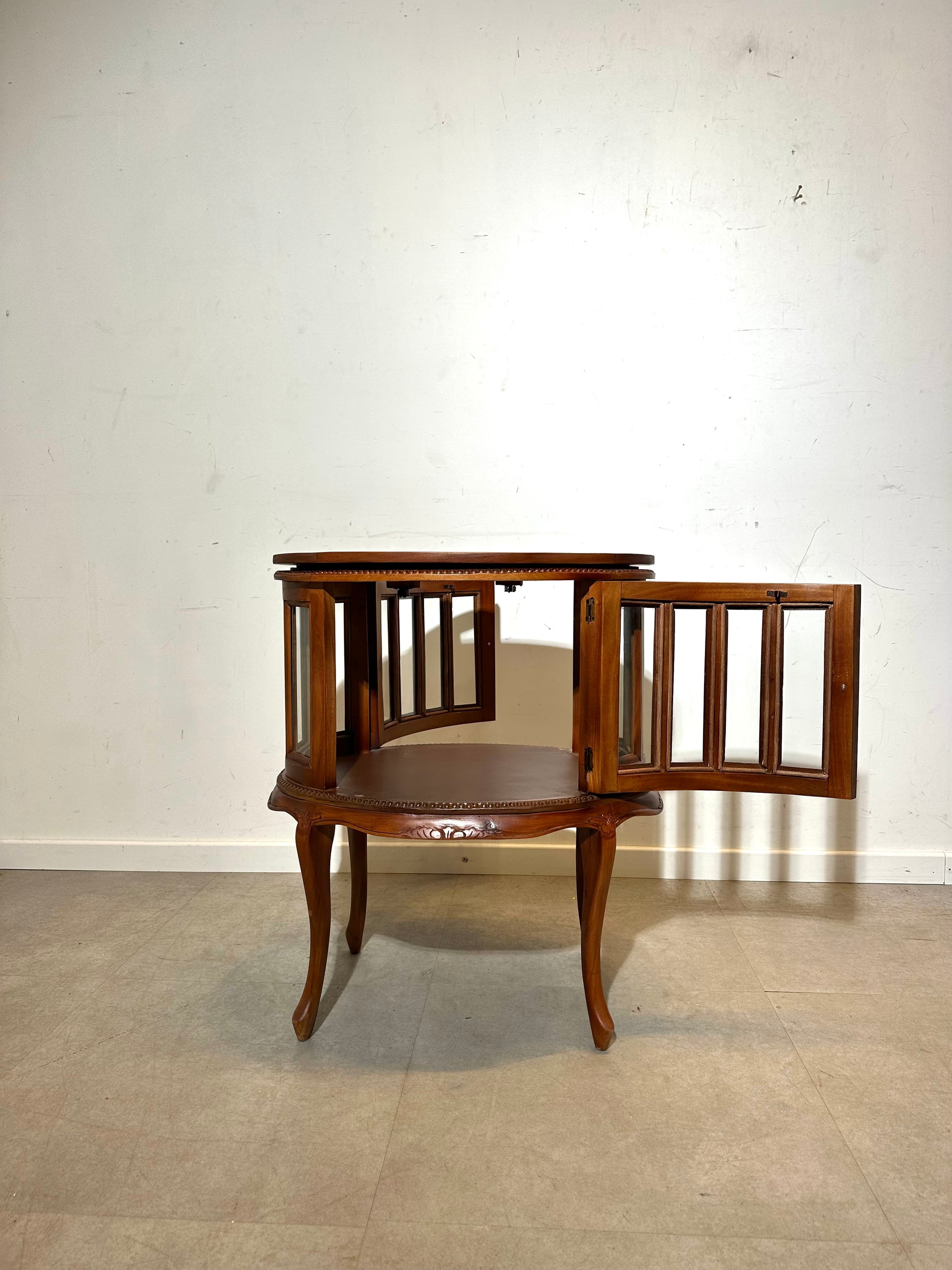 This charming vintage wooden display cabinet combines elegance with functionality.