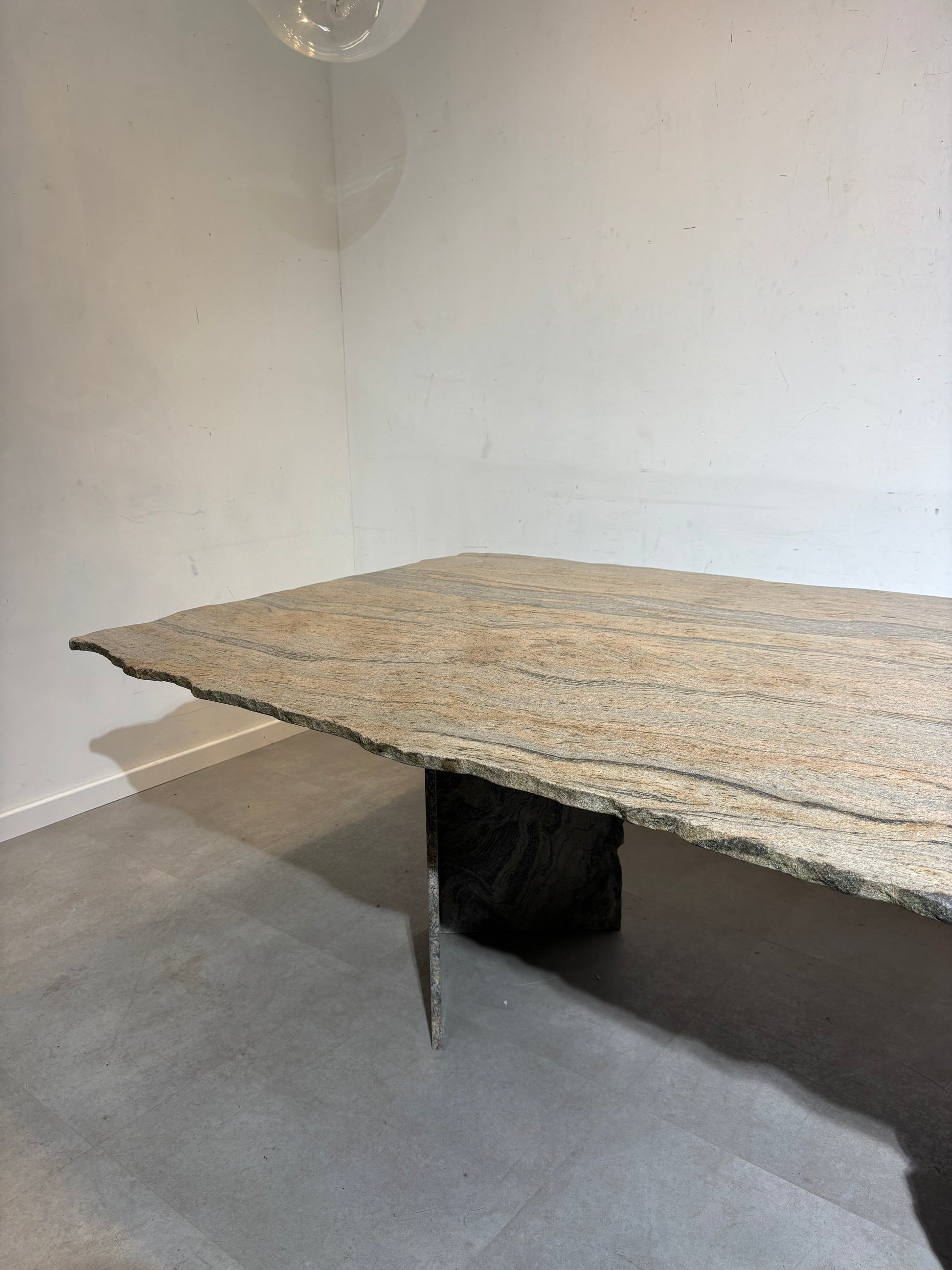 The raw edges are intentionally left unpolished to highlight the natural formation of the stone, making each angle and surface uniquely expressive. Perfect as a dining table, statement conference piece, or artistic studio centerpiece.