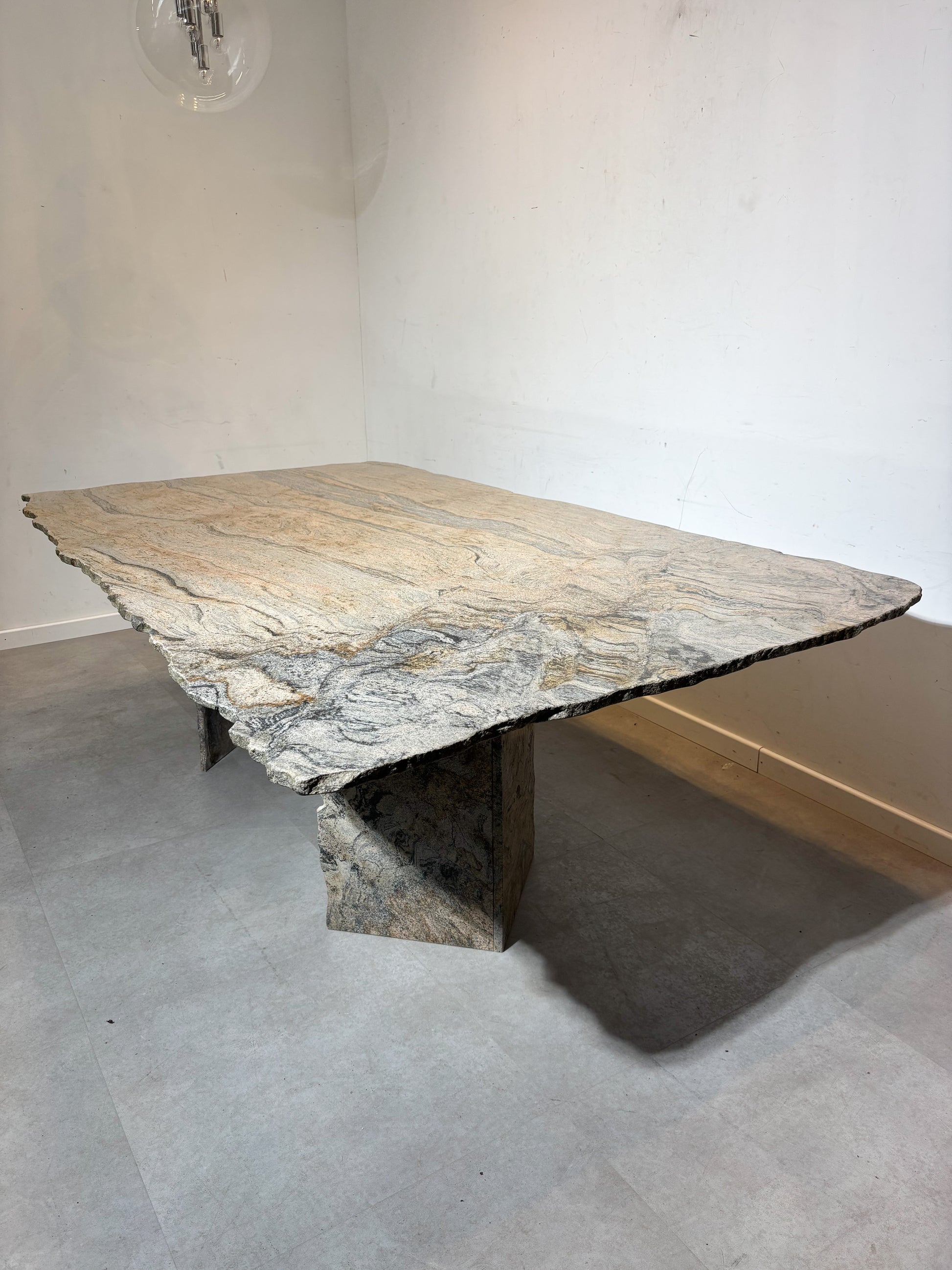 Vintage Quartzite Marble Dining Table – Sculptural Natural Edge
