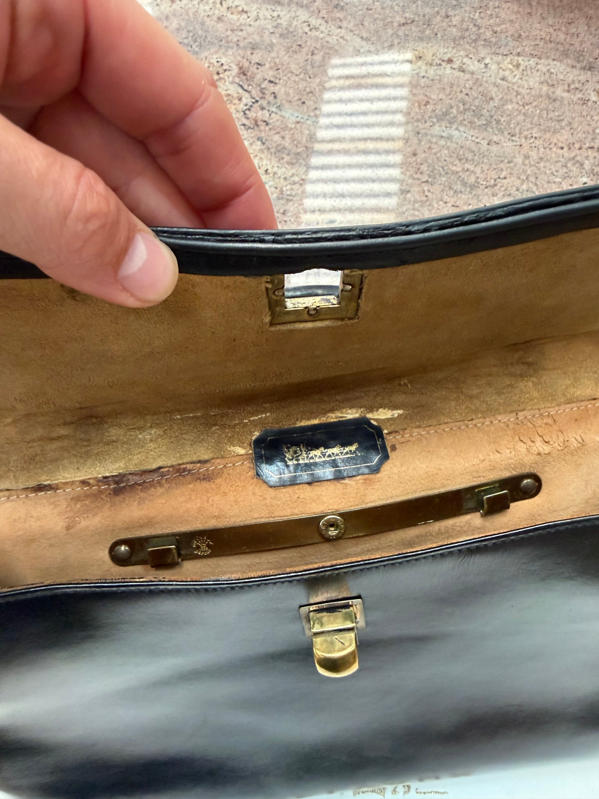 Good vintage condition. The leather shows natural patina and light signs of use consistent with age. Interior remains clean and the structure is well preserved for a bag from this period.