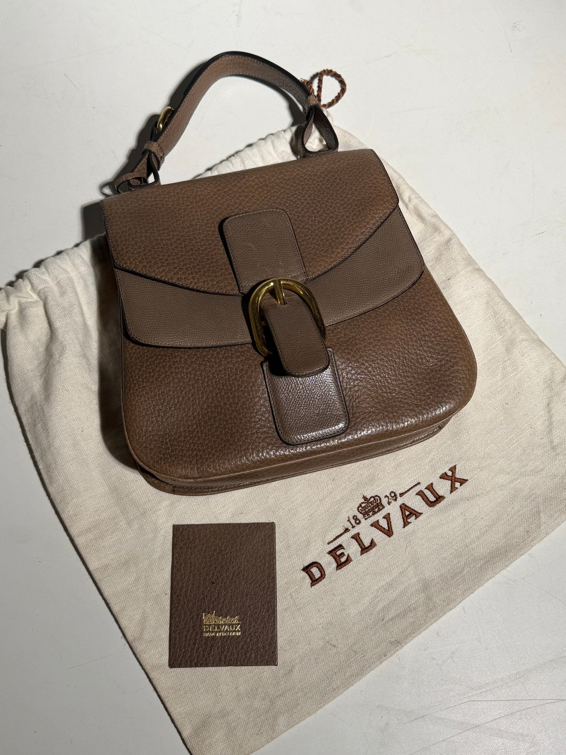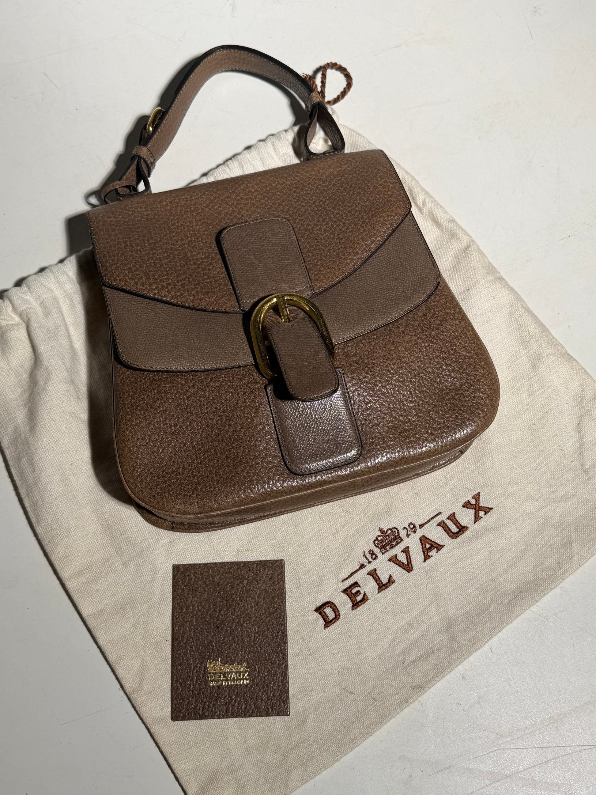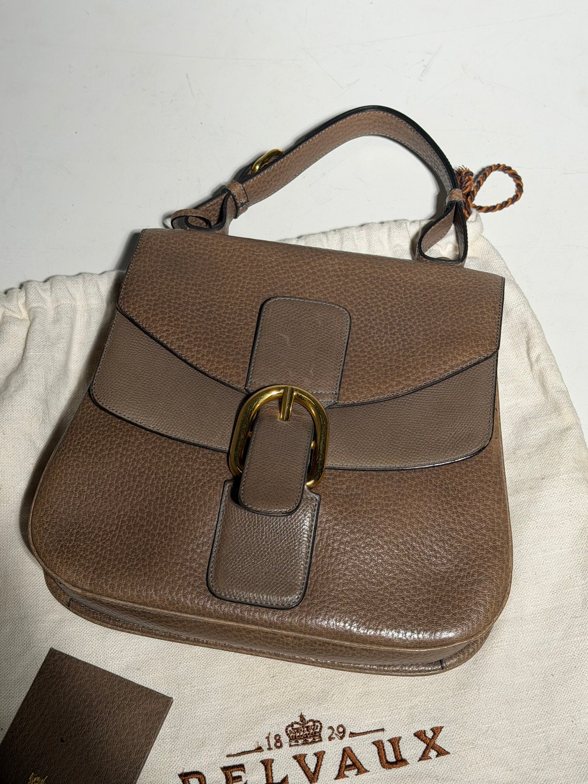 Elegant and timeless vintage handbag by Delvaux, crafted in beautifully textured grained leather. This classic model features a refined two-tone brown colourway, complemented by signature gold-tone hardware and a structured silhouette.
