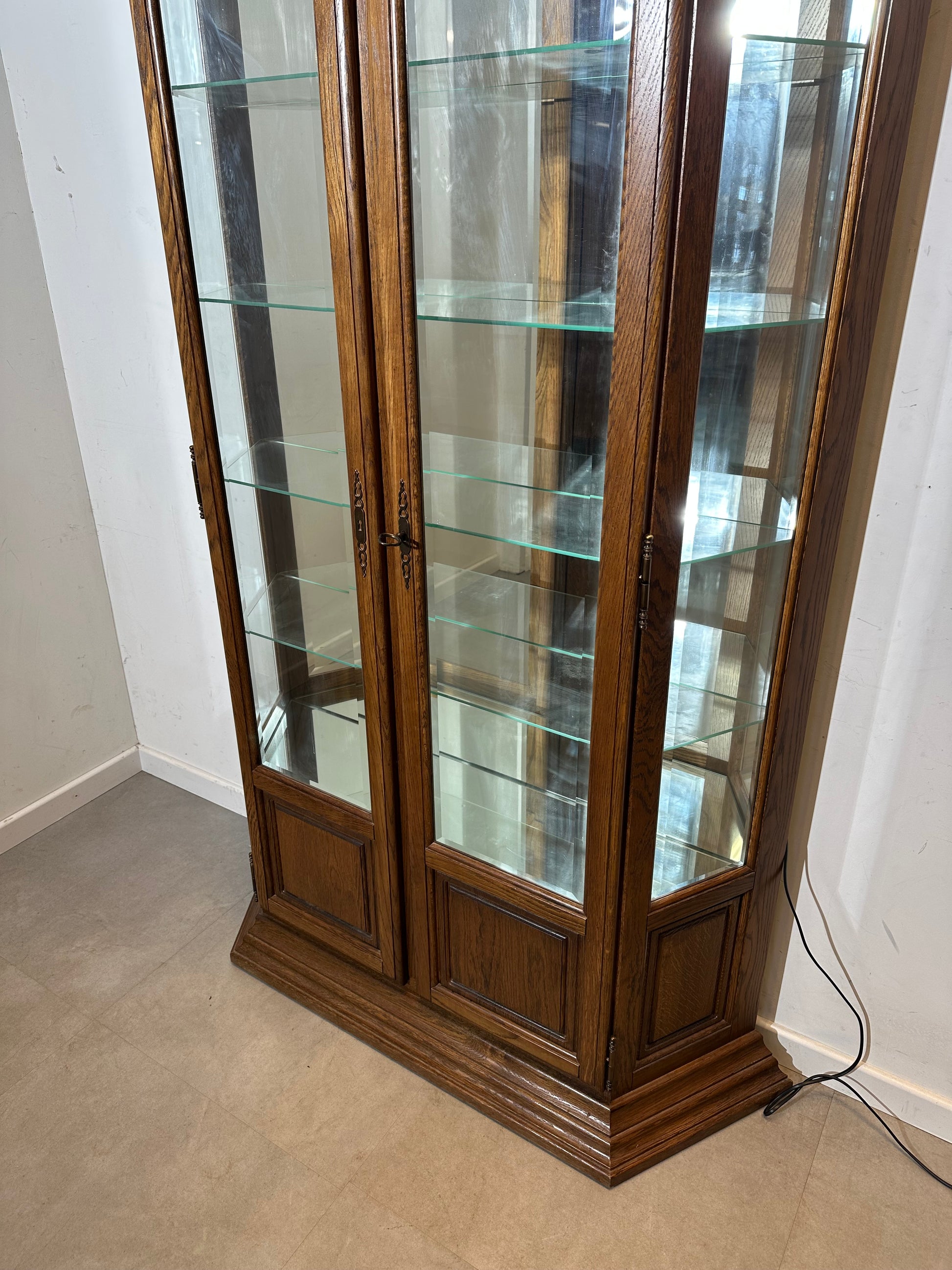 Vintage Oak Display Cabinet with Glass Shelves