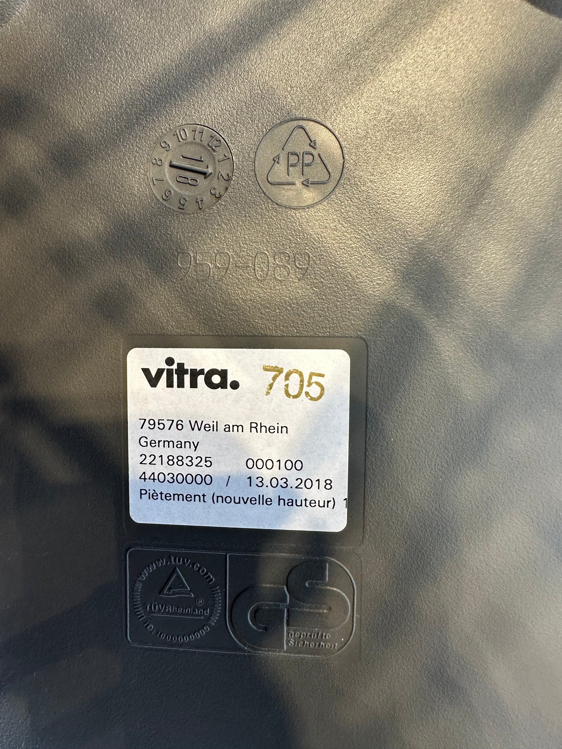 Produced by Vitra in Germany and marked underneath with the original manufacturer label, confirming authenticity. The neutral grey shell pairs easily with a wide range of interiors and materials.