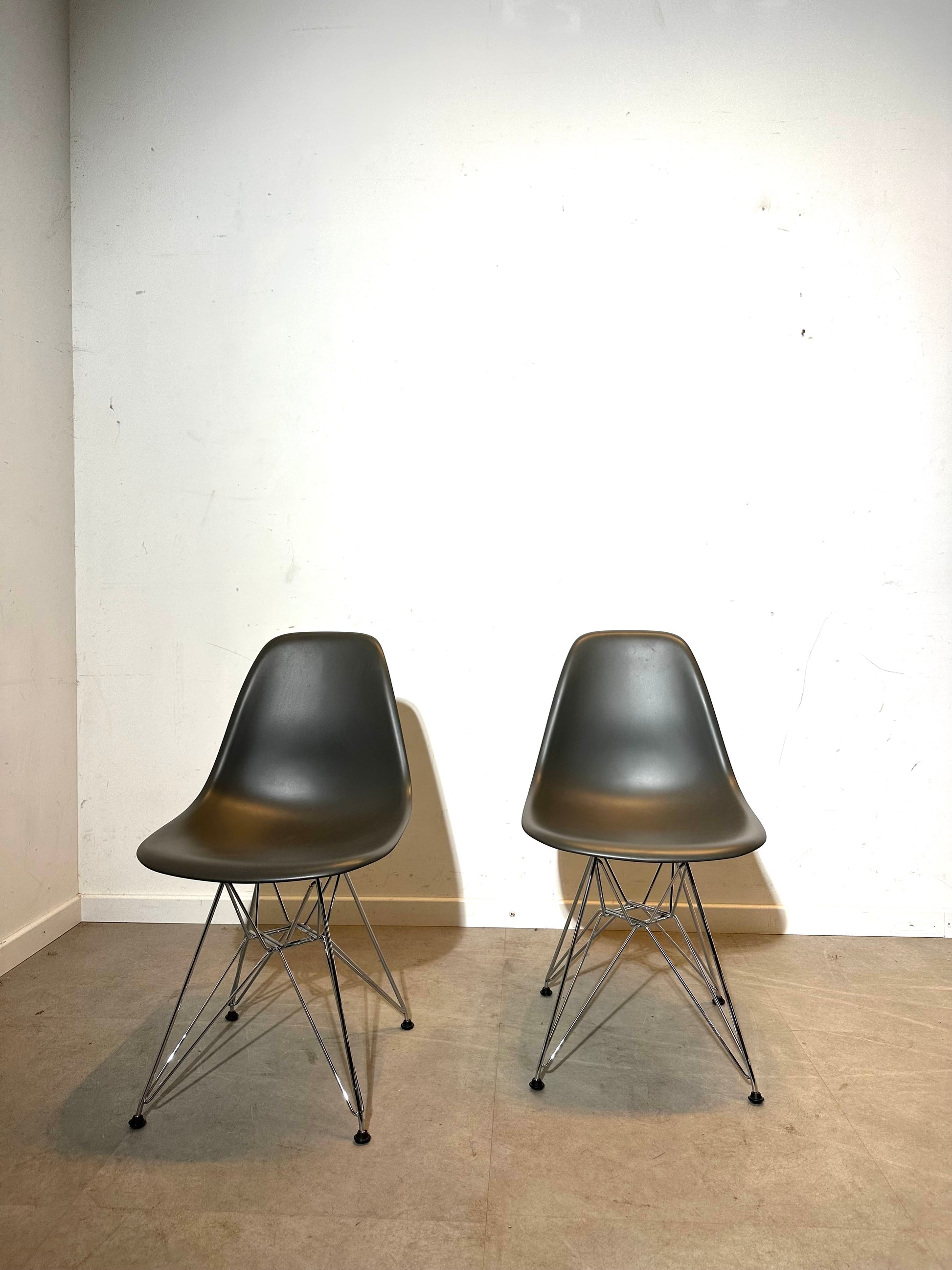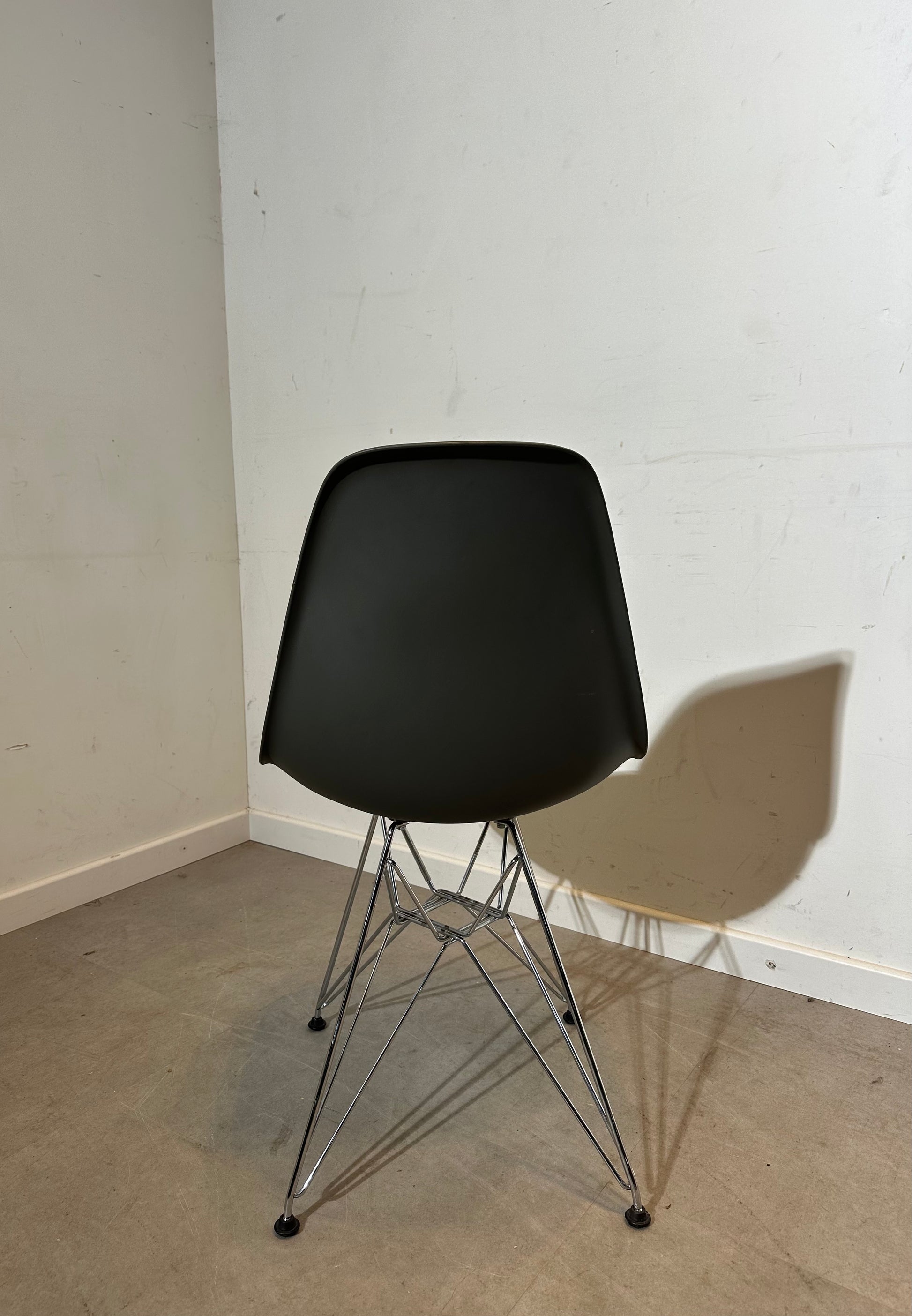 Original Vitra plastic side chair model 705, featuring the iconic molded shell combined with a chrome wire Eiffel base. This timeless design offers a comfortable, ergonomic seating position and a light, elegant appearance that works perfectly in dining areas, offices or contemporary interiors.